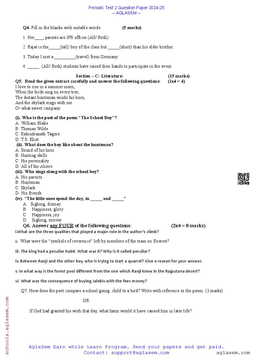 The Class 8 PT 2 Question Paper Englsh 2024-25 PDF is is made available here by aglasem for your exam preparation. You can download the Class 8 PT II Englsh Question Paper PDF from here on aglasem.com to prepare for this crucial exam. It is important to solve this Englsh question paper, along with other Class 8 PT Question Paper if you are a student in the 8th grade, as it helps you understand the pattern and type of questions you will face in your upcoming periodic test exams. The Englsh Periodic Test 2 Question Paper is designed to test the student’s understanding of various Englsh concepts taught in the first term. Here, you will know everything about the Class 8 PT 2 Englsh Question Paper, including tips, sample questions, and resources for effective preparation.
