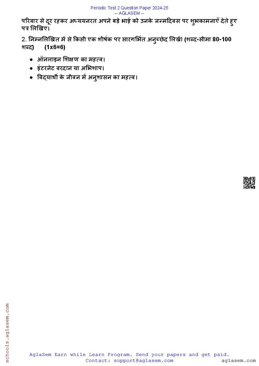 Class 8 PT II Question Paper 2024-25 Hindi View Download