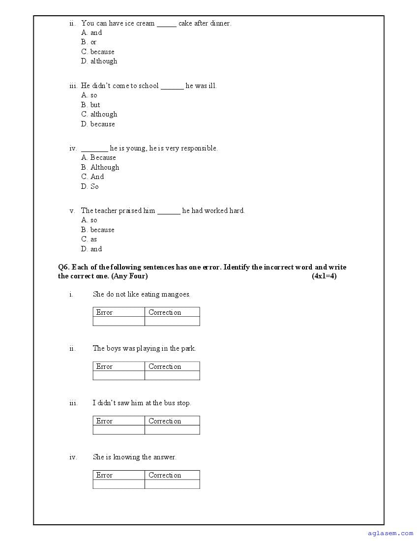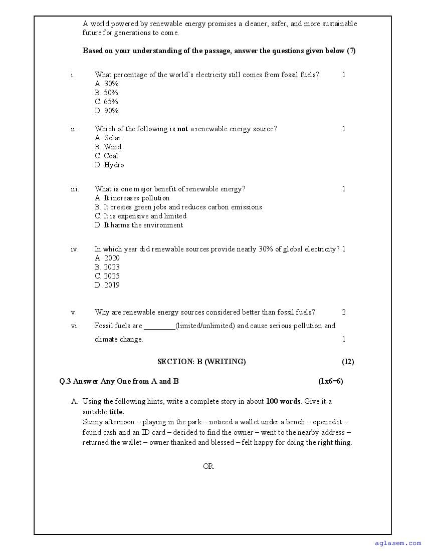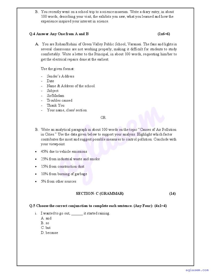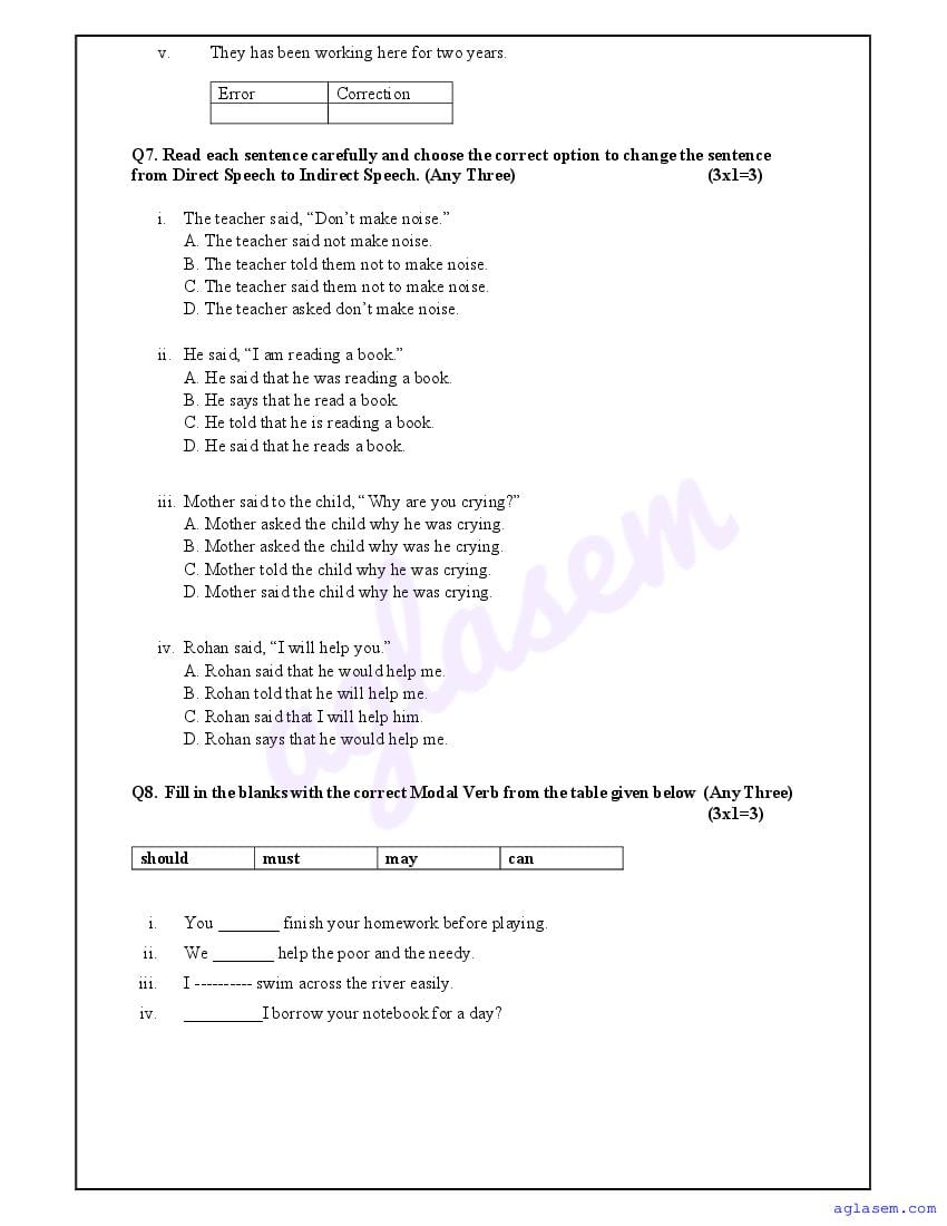 | AglaSem Paper | Class 8 Sample Paper of English |