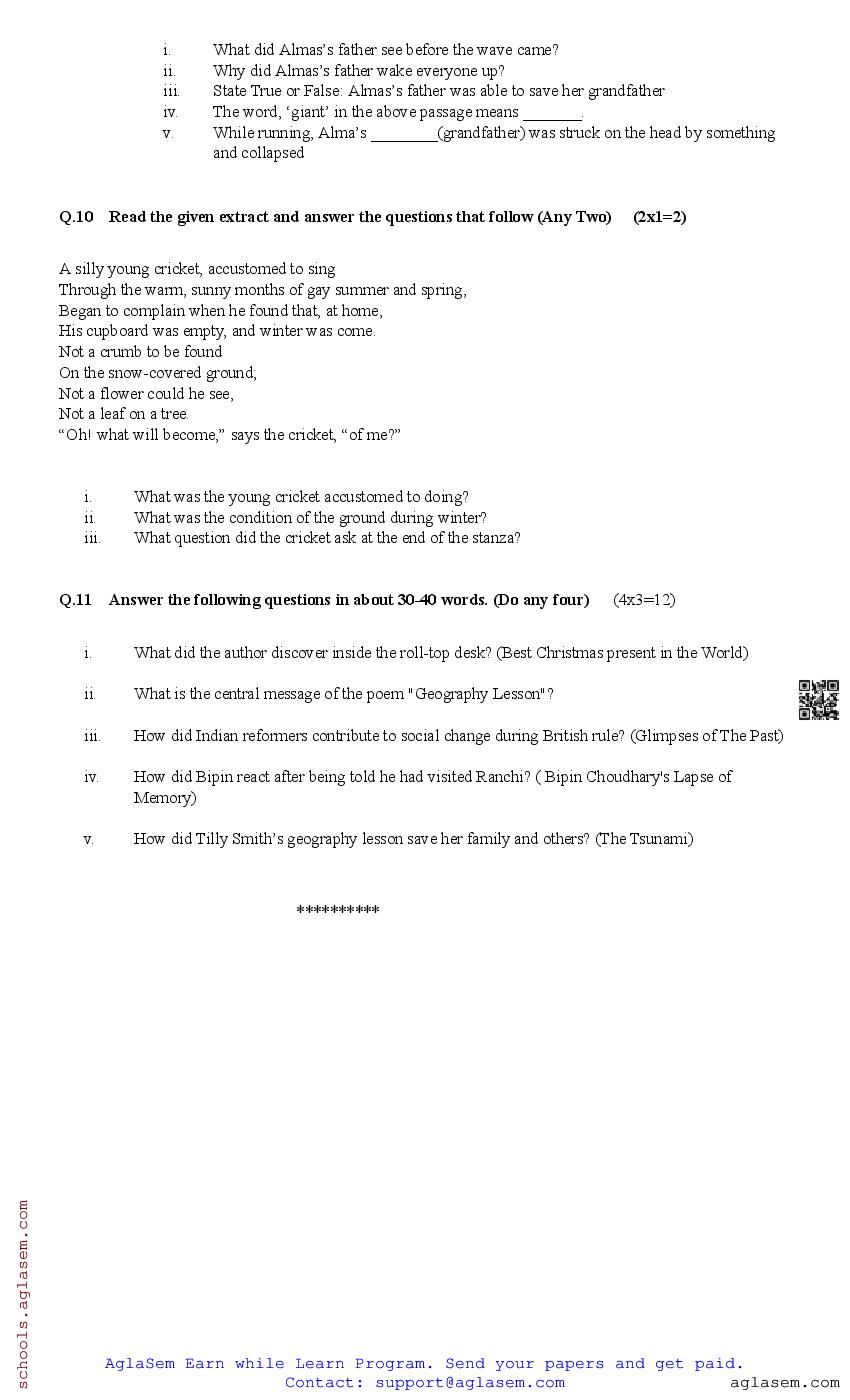 You can view and download Sample Paper for Standard 8 Mid-Term Exam 2025 for English subject from aglasem.