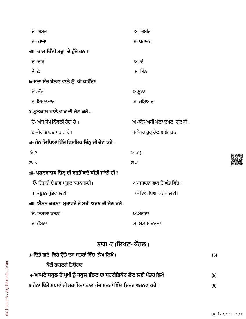 The direct link to download Std 8 Punjabi model question paper mid term is given above. While you can easily download the Punjabi sample paper from aglasem. In case you want to read the complete mid term specimen paper for Punjabi, then that provision is also available on this page. The complete class 8 Punjabi mid term sample paper pdf is given below.