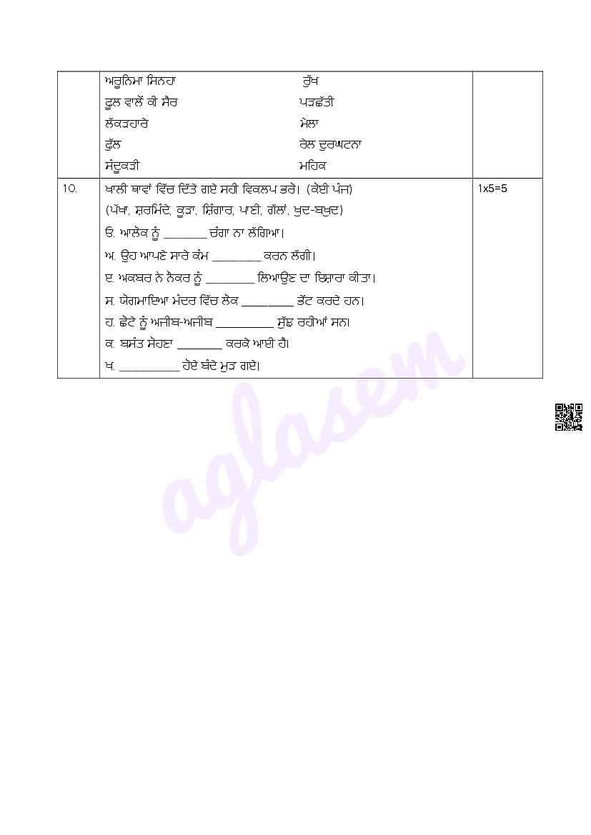 | AglaSem Paper | Class 8 Sample Paper of Punjabi |