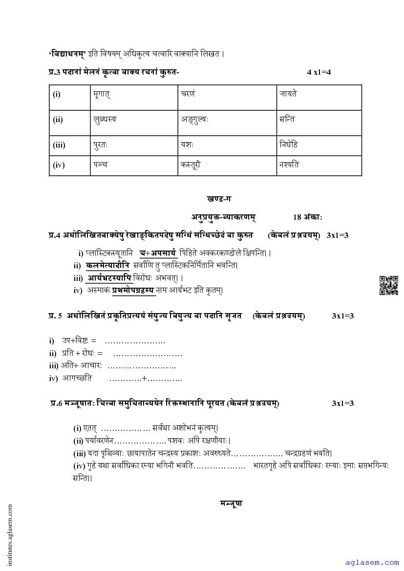 | Study Material Here | Class 8 Sanskrit Mid Term Sample Paper |