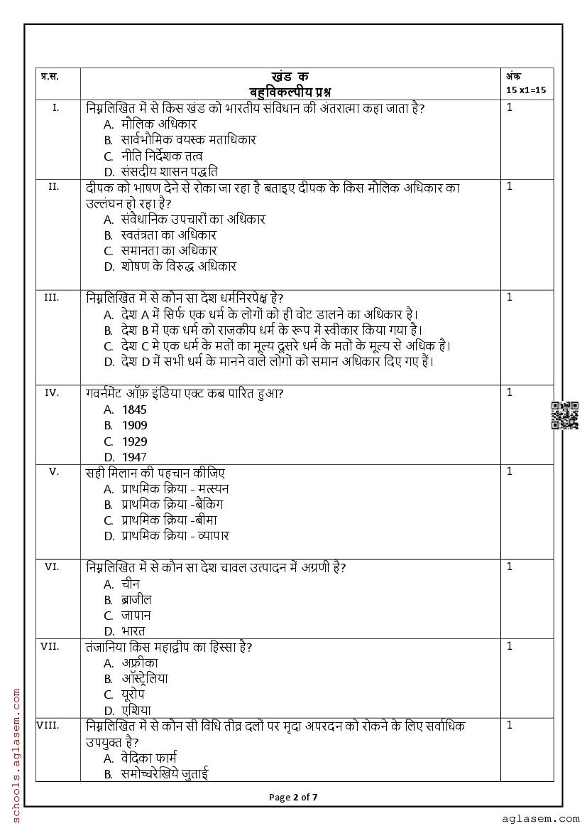 Get the Class 8 Social Science Mid Term Sample Paper 2025 for your school mid term examination. These Class 8 Social Science Mid Term Sample Paper 2025 for are developed by experts based on NCERT syllabus. You can now download the Class 8 Social Science Mid Term Model Question Paper PDF here at aglasem. This class 8 mid term sample paper for Social Science contains specimen questions from the latest class 8 Social Science syllabus and gives you a good idea of what to expect in Social Science paper in periodic tests, unit tests or term 1 examination. Therefore, by solving the Social Science sample paper, you can aim for better marks in class 8 periodic test.