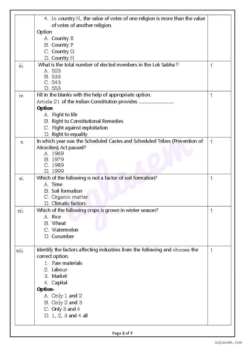 | AglaSem Paper | Class 8 Sample Paper of Social Science |