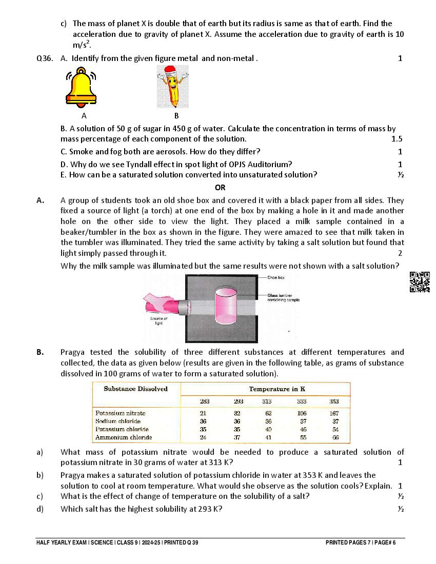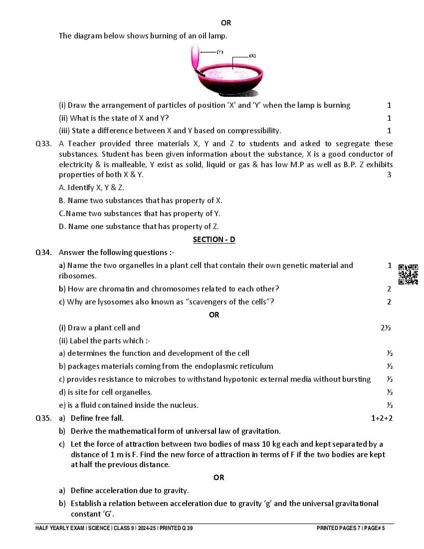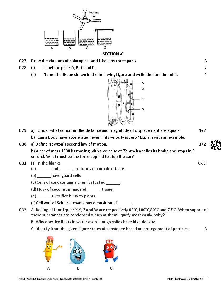 Class 9 Question Paper 2024-25 Science (Half Yearly) View Download