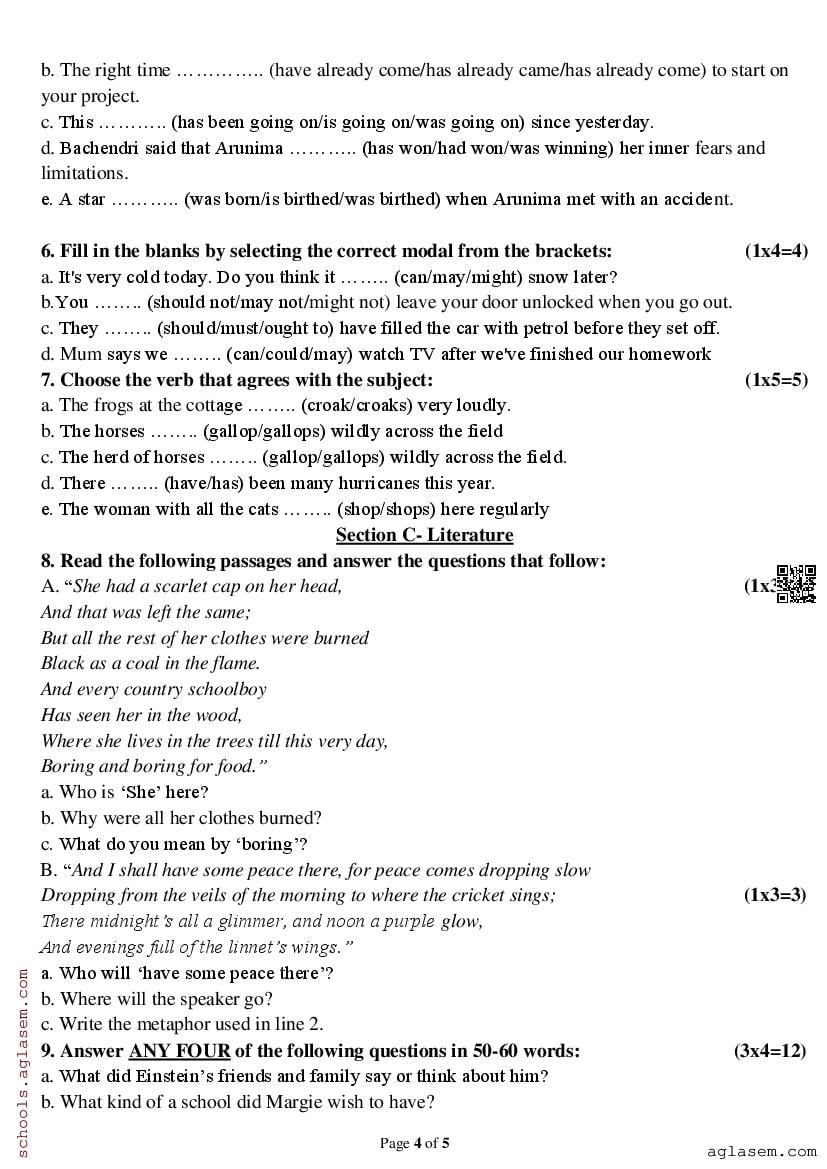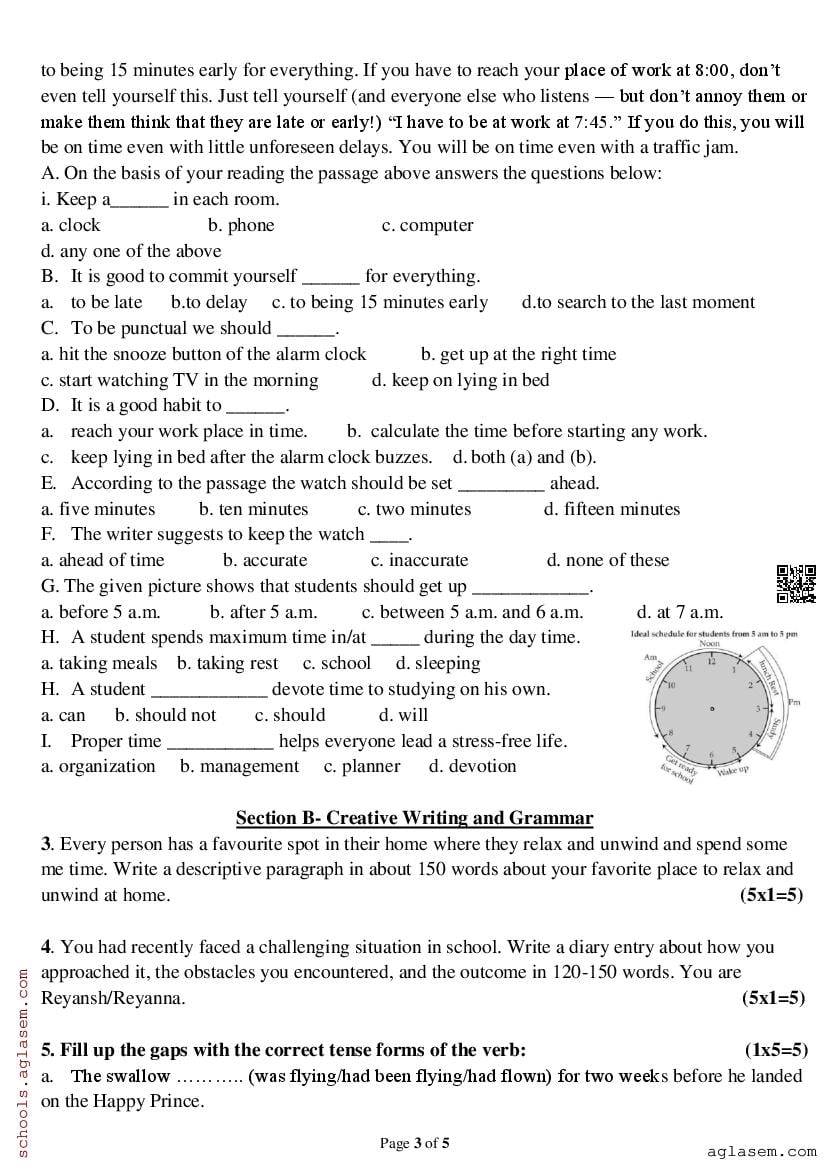 You can easily download the Class 9 English Mid Term Question Paper PDF from aglasem. The paper is prepared based on the latest syllabus and gives a clear idea of the type of questions asked in the exam. The mid term exam question paper for 9th std for English subject is as follows.