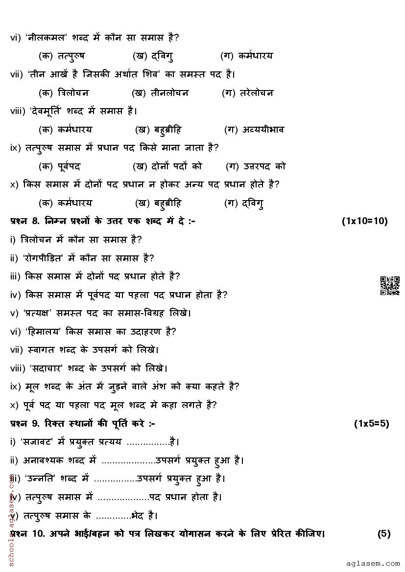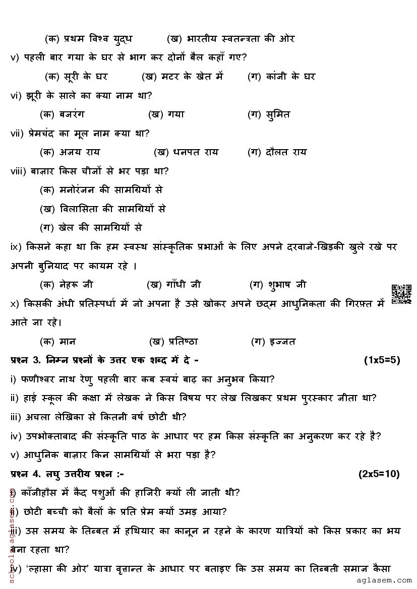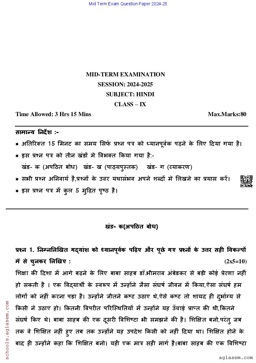 You can easily download the Class 9 Hindi Mid Term Question Paper PDF from aglasem. The paper is prepared based on the latest syllabus and gives a clear idea of the type of questions asked in the exam. The mid term exam question paper for 9th std for Hindi subject is as follows.