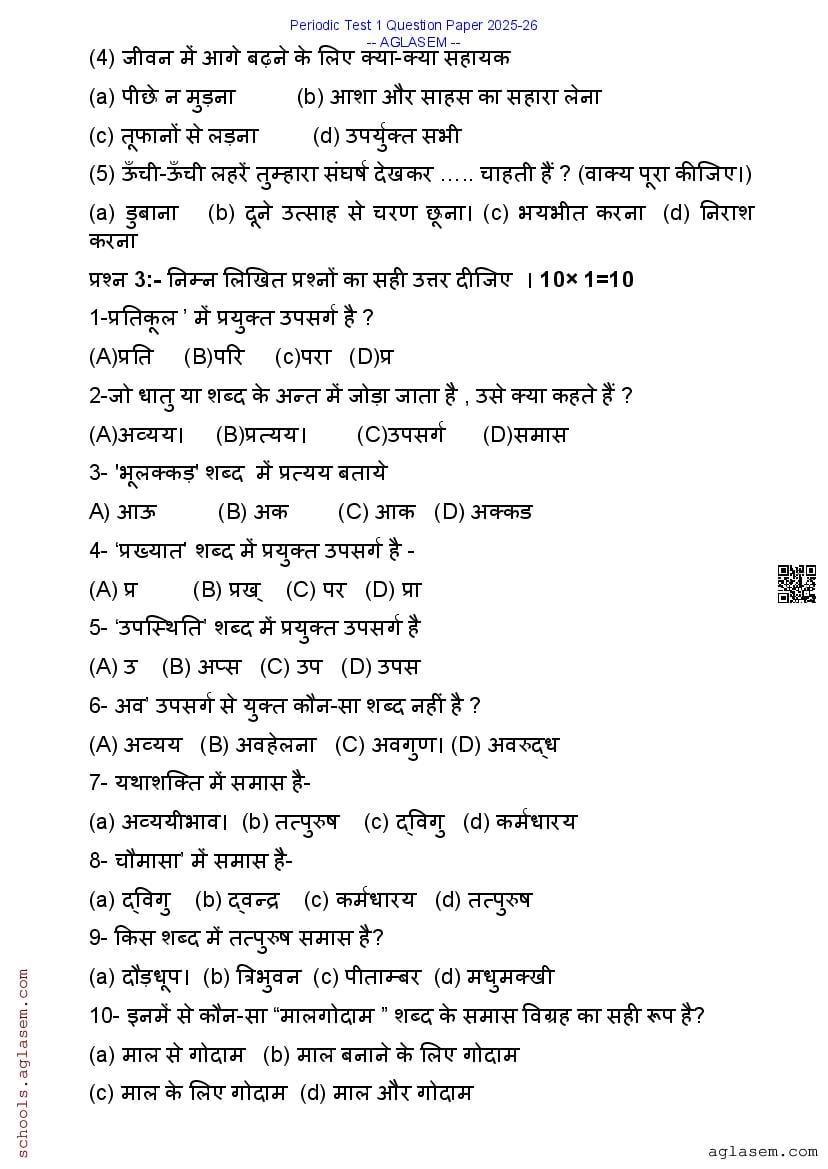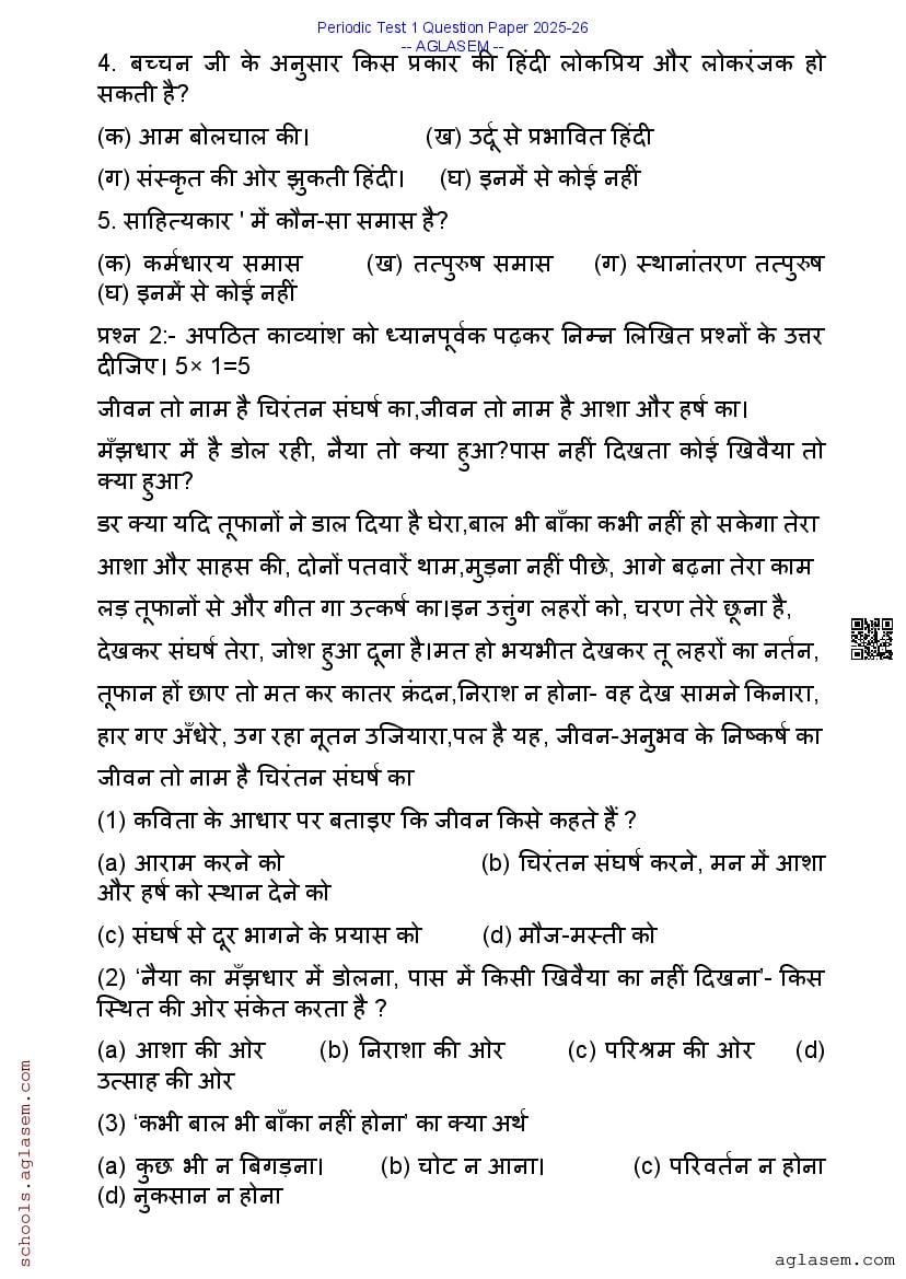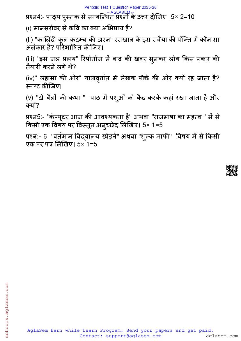 The complete pdf for Periodic Test I Question Paper for Hindi is as follows.