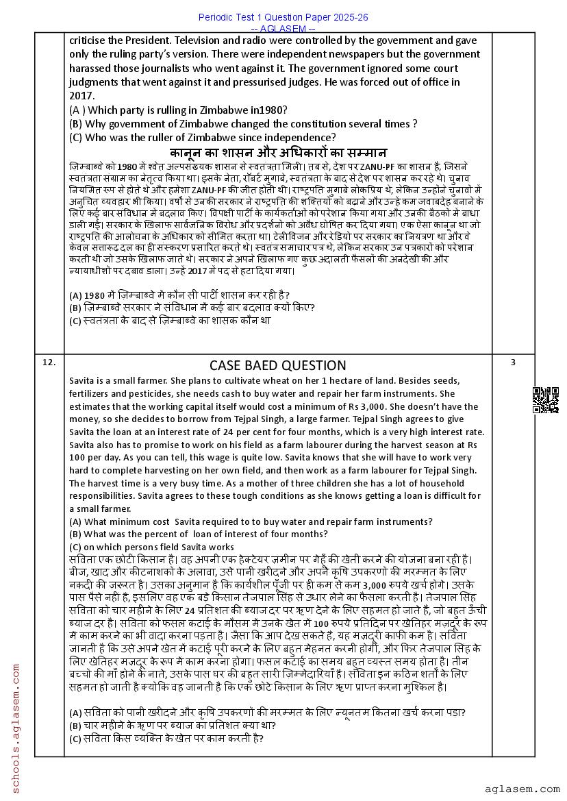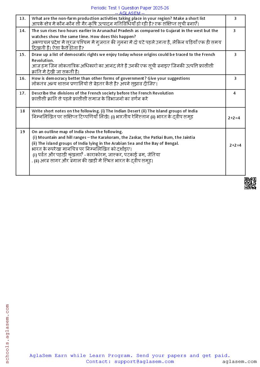 The complete pdf for Periodic Test I Question Paper for Social Science is as follows.