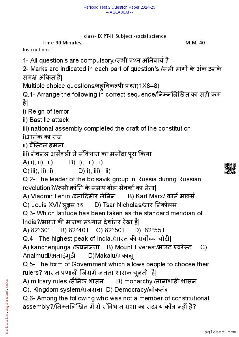 Class 9 PT II Question Paper 2024-25 Social Science View Download
