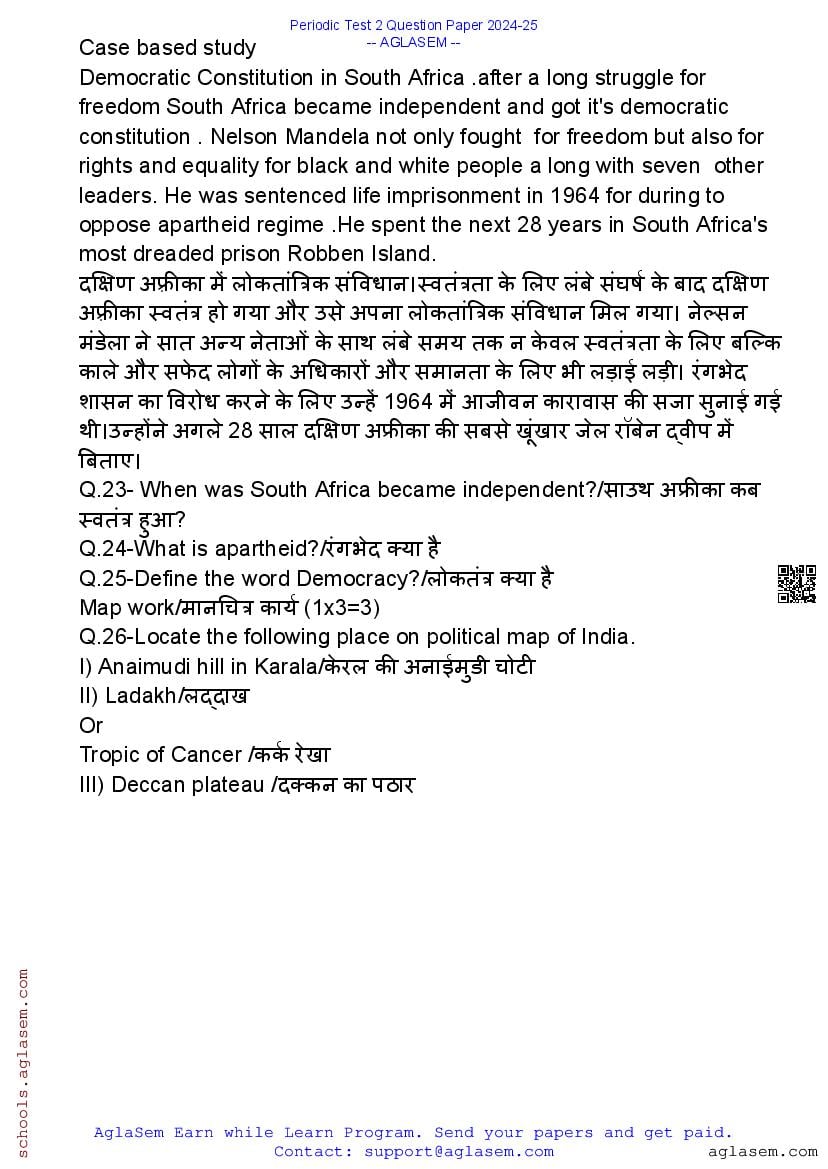 The complete pdf for Periodic Test I Question Paper for Social Science is as follows.