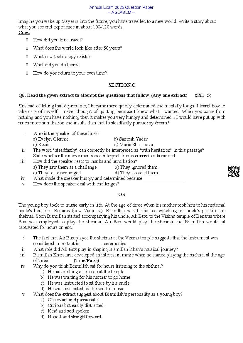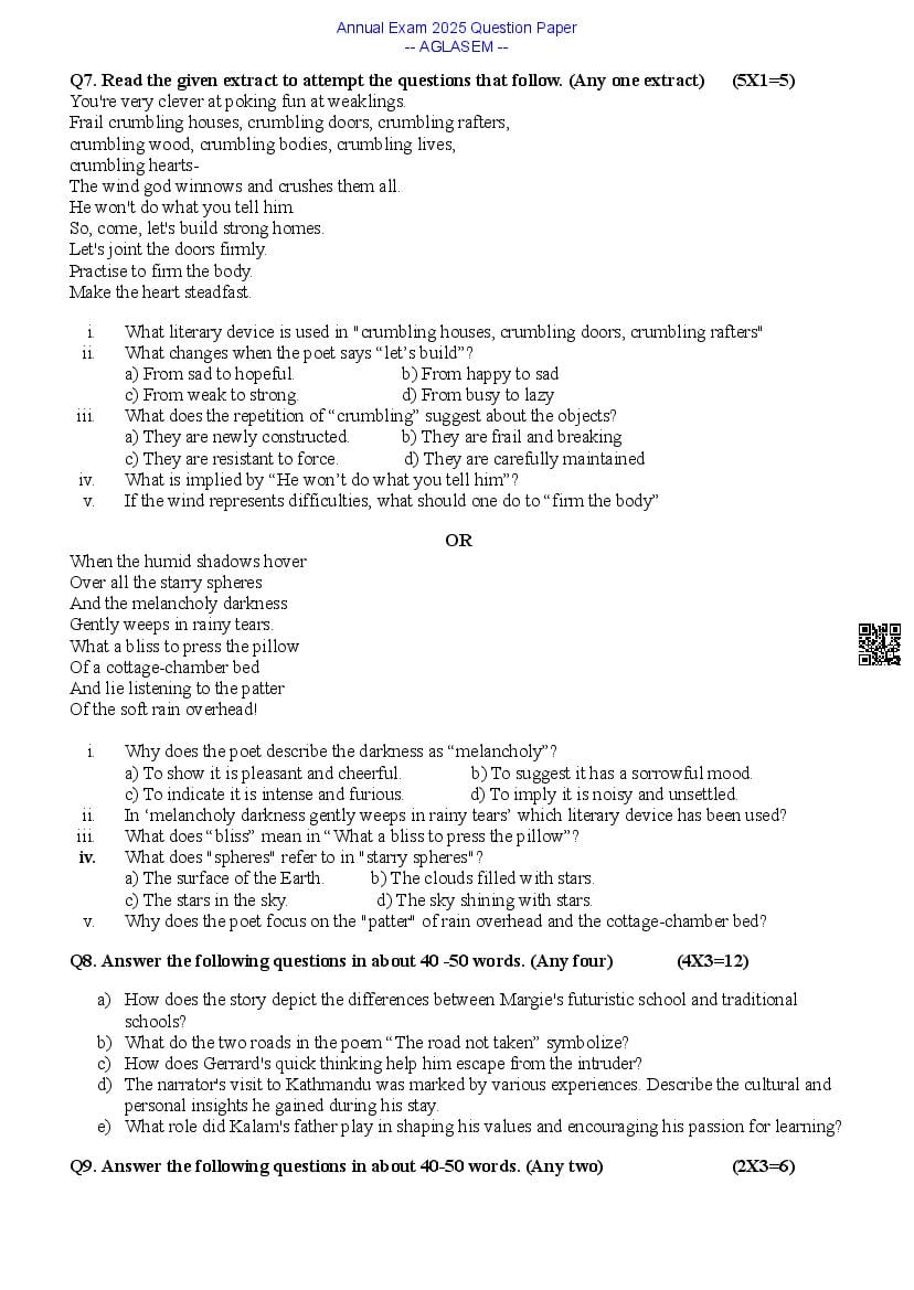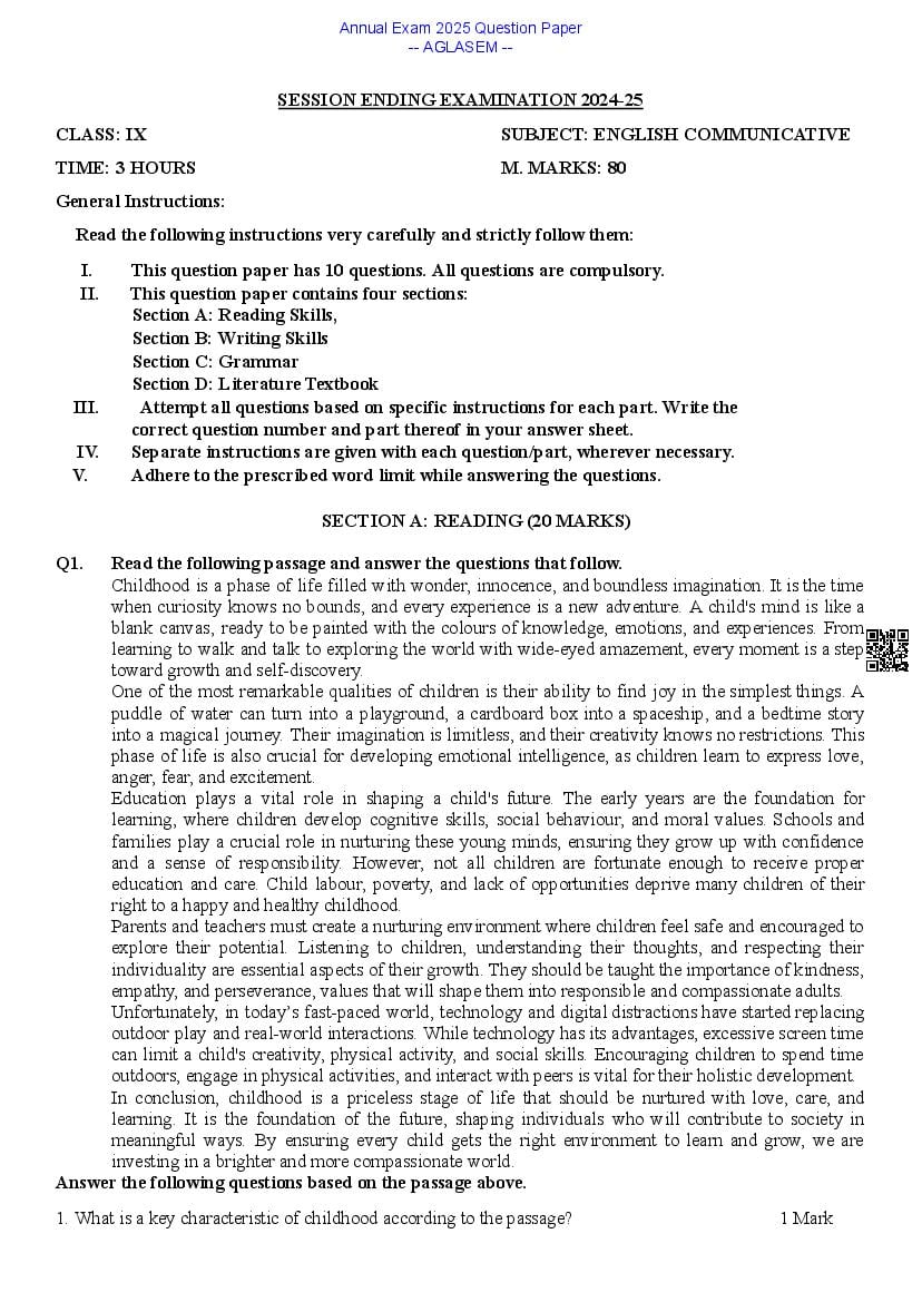 Class 9 English Question Paper 2025