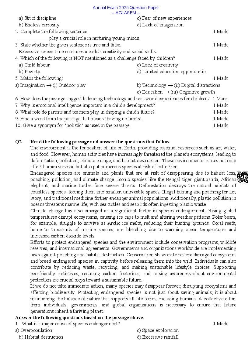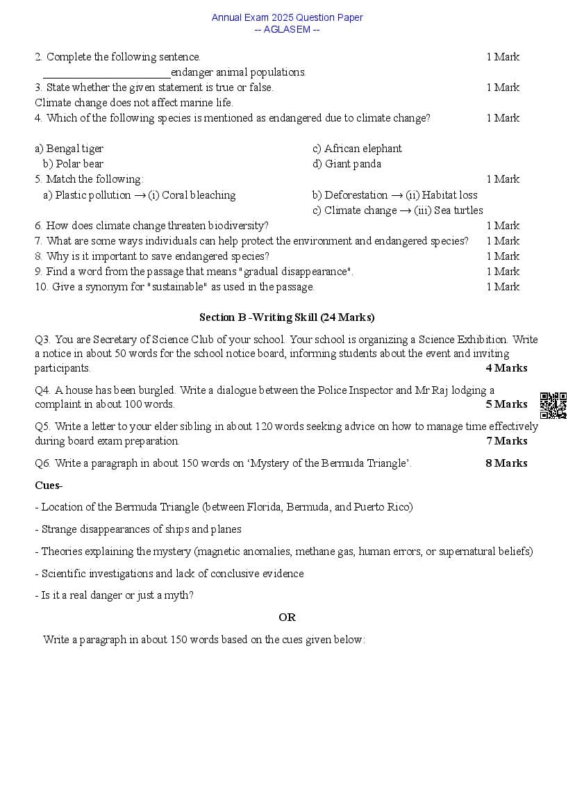 | All Annual Exam Exam Papers | Annual Exam Question Paper |