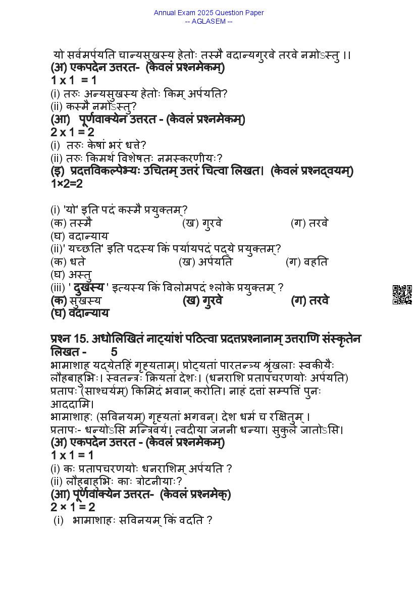 We have provided you the direct link to download Sanskrit question paper above. However if you want to read the 9th Sanskrit Annual Exam exam question paper here itself, that is also possible. The complete paper is as follows.