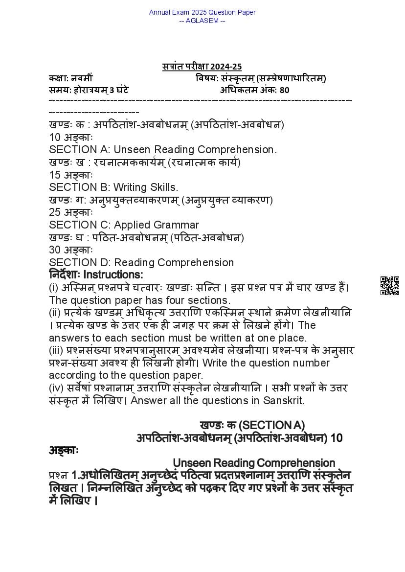 9th Annual Exam Sanskrit Question Paper – An Overview