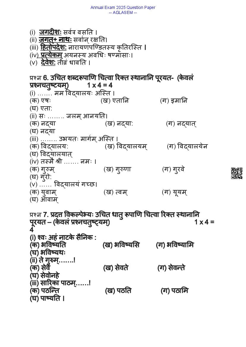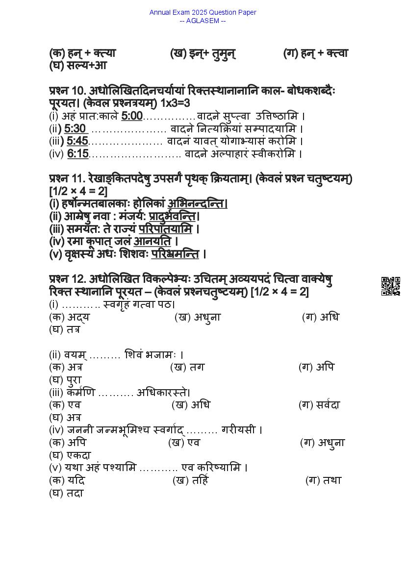 Class 9 Sanskrit Question Paper 2025