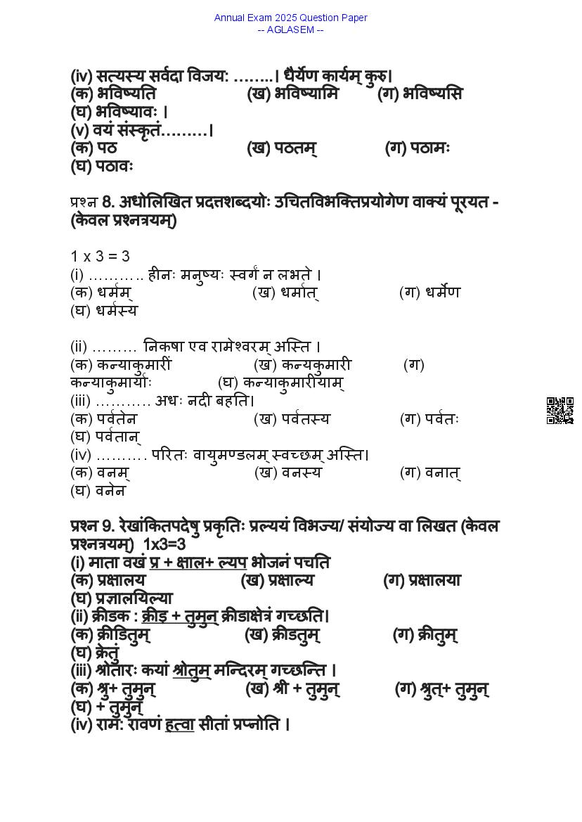 | Paper Here | 9th Question Paper Sanskrit |