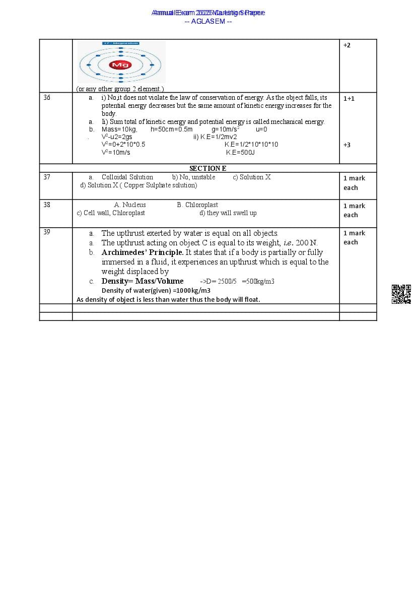 Class 9 Science Annual Exam Question Paper 2025 PDF