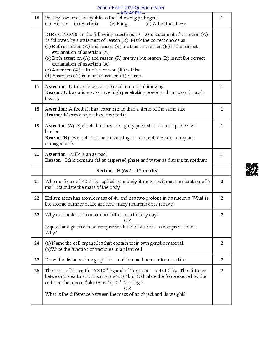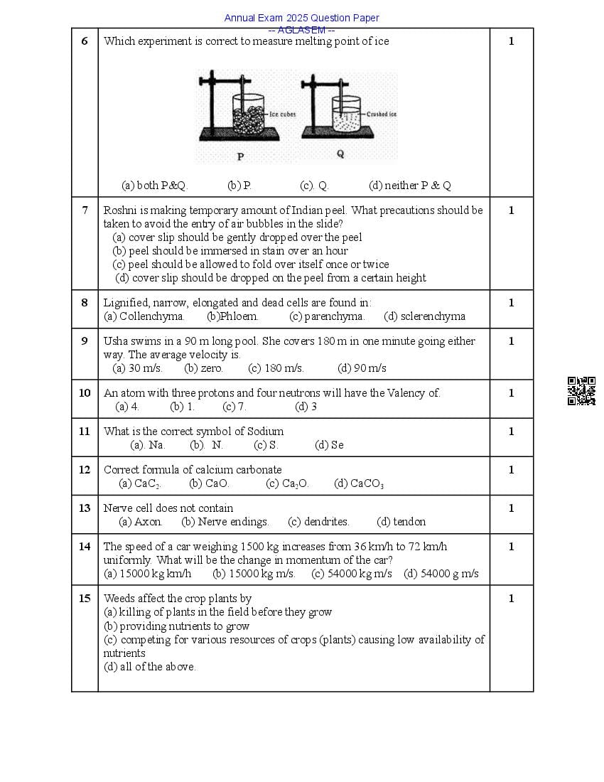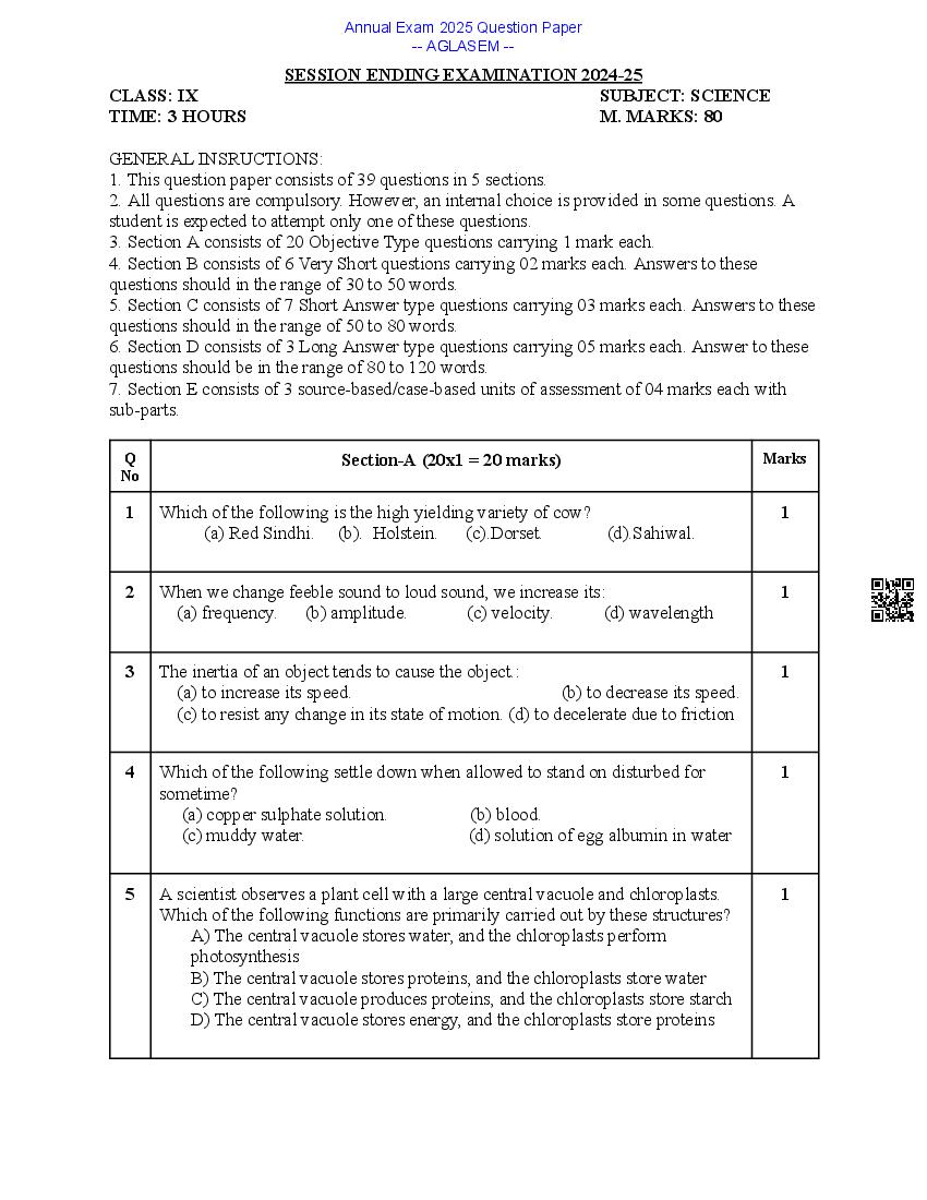 Class 9 Science Question Paper 2025
