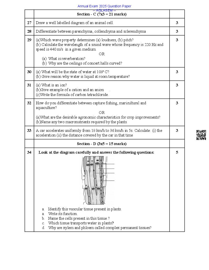 Class 9 Annual Exam Question Paper