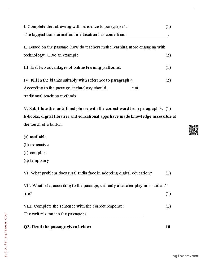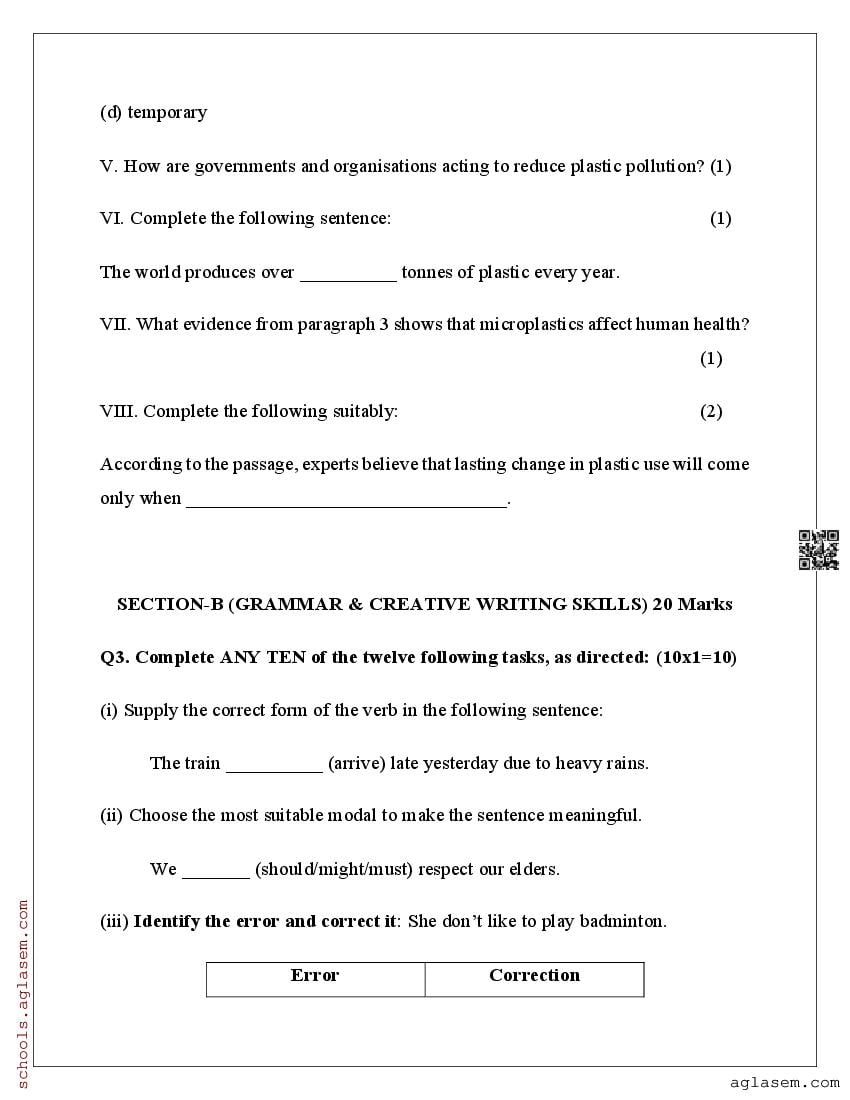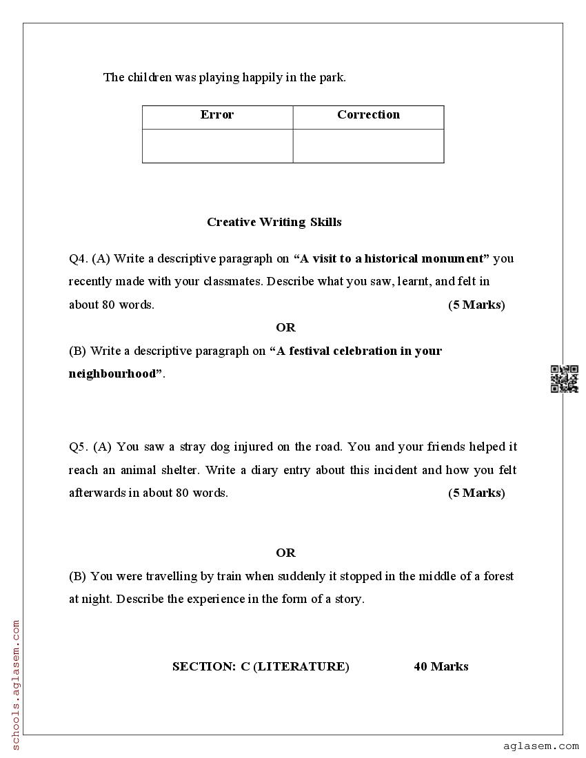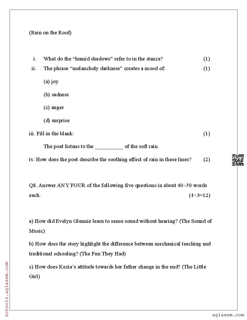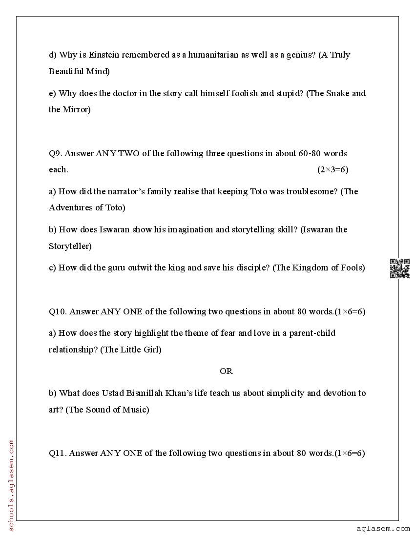 You can view and download Sample Paper for Standard 9 Mid-Term Exam 2025 for English subject from aglasem.