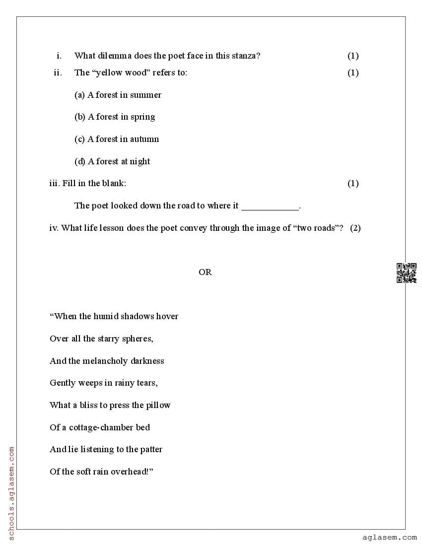 Get the Class 9 English Mid Term Sample Paper 2025 for your school mid term examination. These Class 9 English Mid Term Sample Paper 2025 for are developed by experts based on NCERT syllabus. You can now download the Class 9 English Mid Term Model Question Paper PDF here at aglasem. This class 9 mid term sample paper for English contains specimen questions from the latest class 9 English syllabus and gives you a good idea of what to expect in English paper in periodic tests, unit tests or term 1 examination. Therefore, by solving the English sample paper, you can aim for better marks in class 9 periodic test.