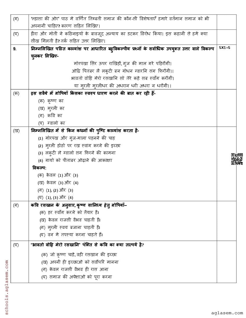 The direct link to download Std 9 Hindi model question paper mid term is given above. While you can easily download the Hindi sample paper from aglasem. In case you want to read the complete mid term specimen paper for Hindi, then that provision is also available on this page. The complete class 9 Hindi mid term sample paper pdf is given below.