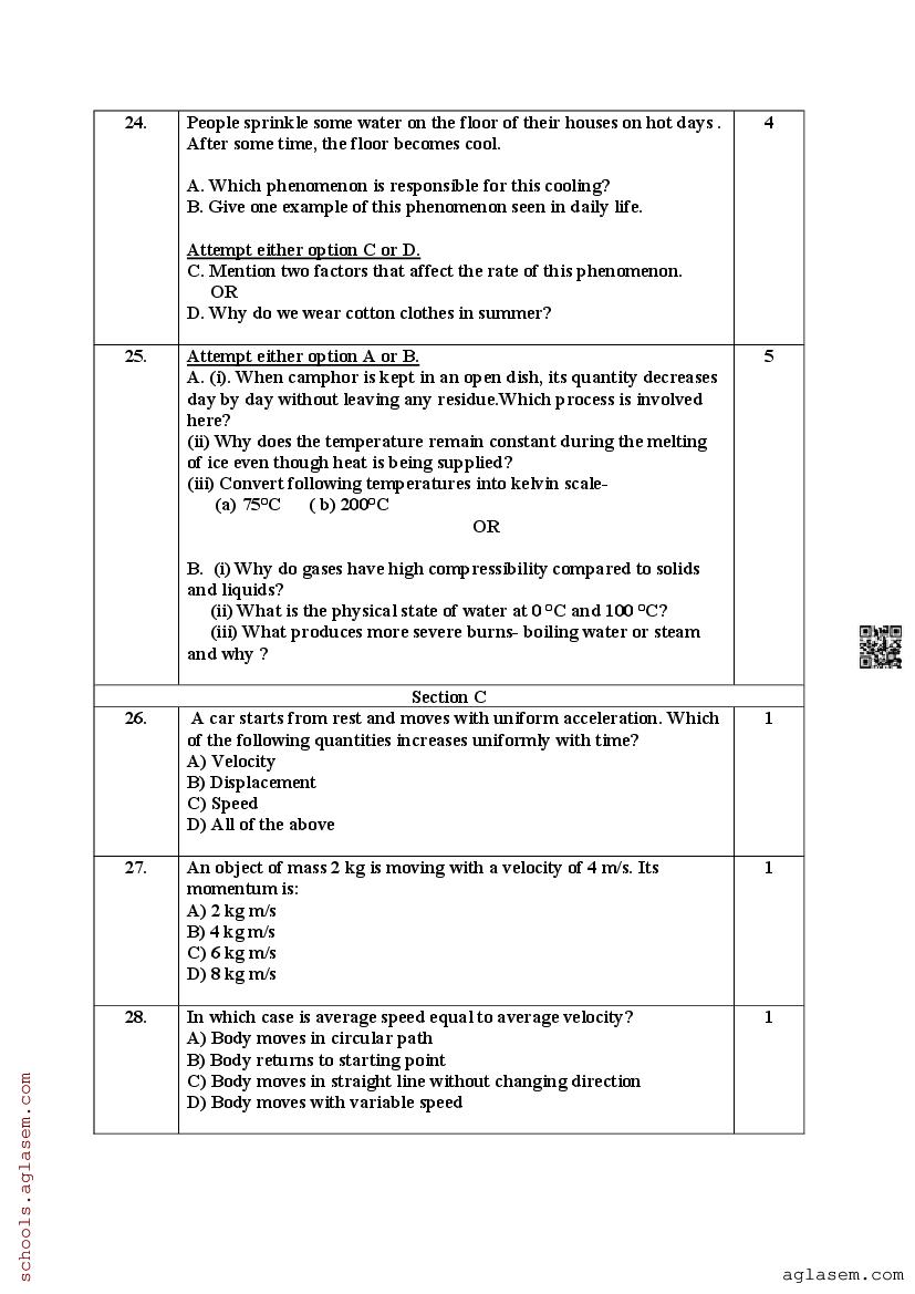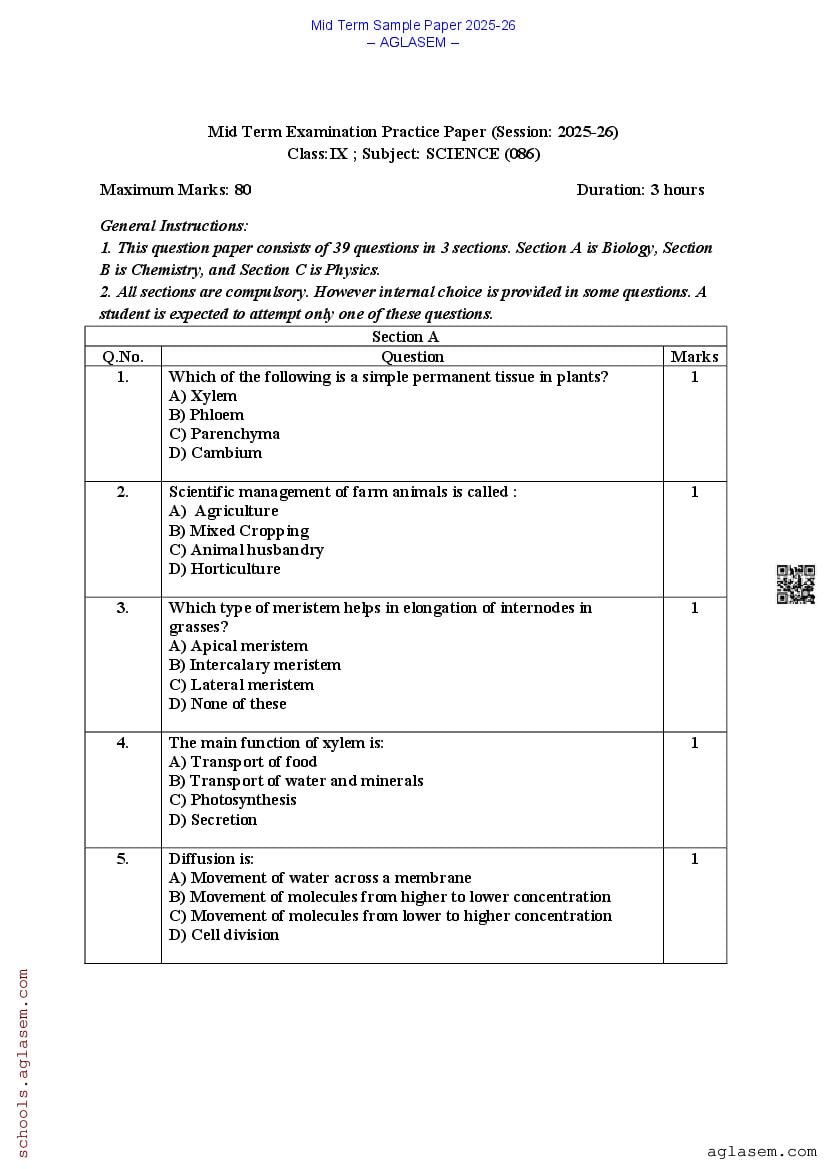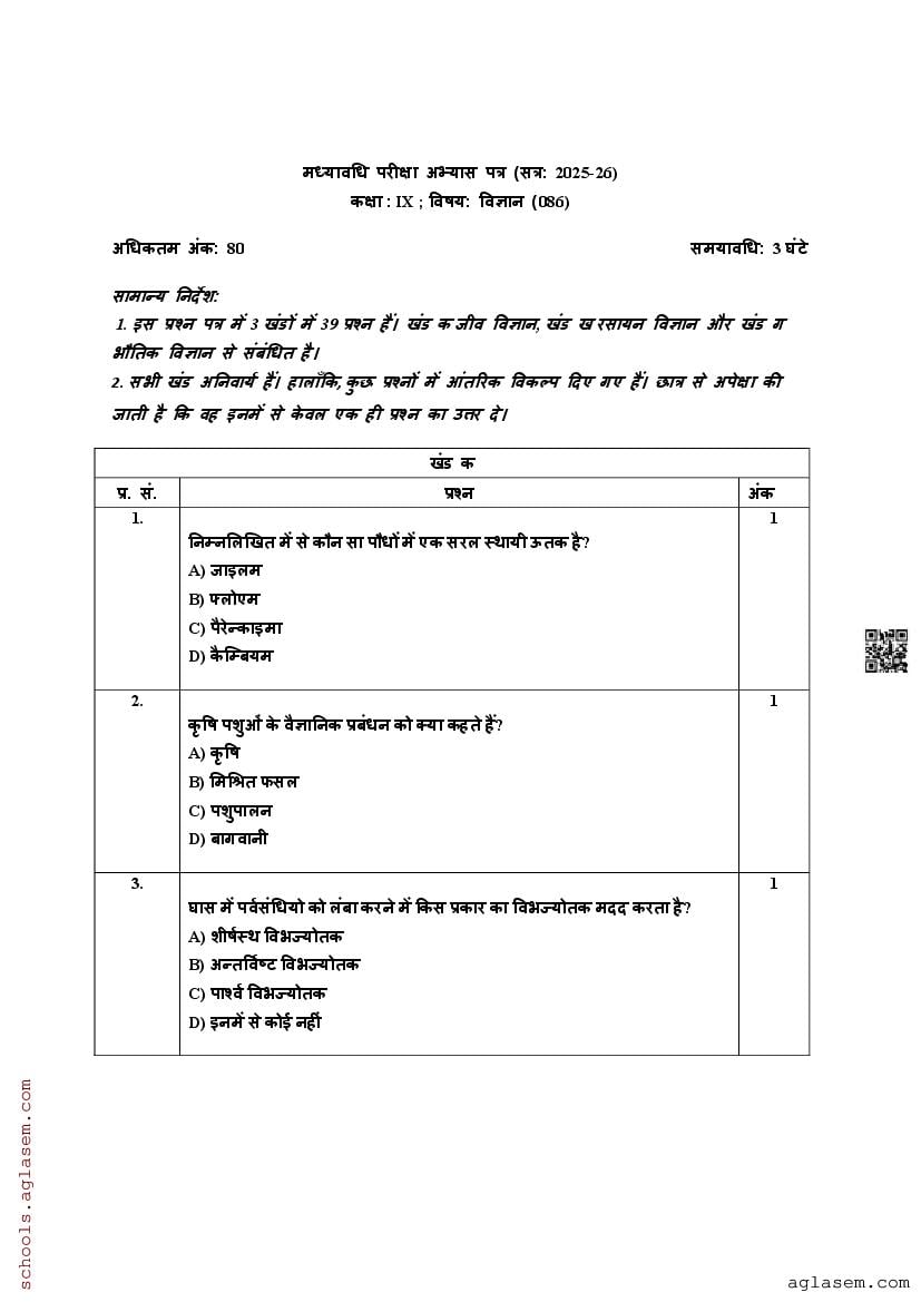 You can view and download Sample Paper for Standard 9 Mid-Term Exam 2025 for Science subject from aglasem.