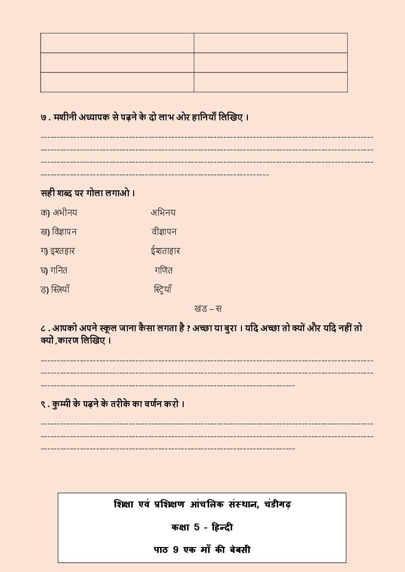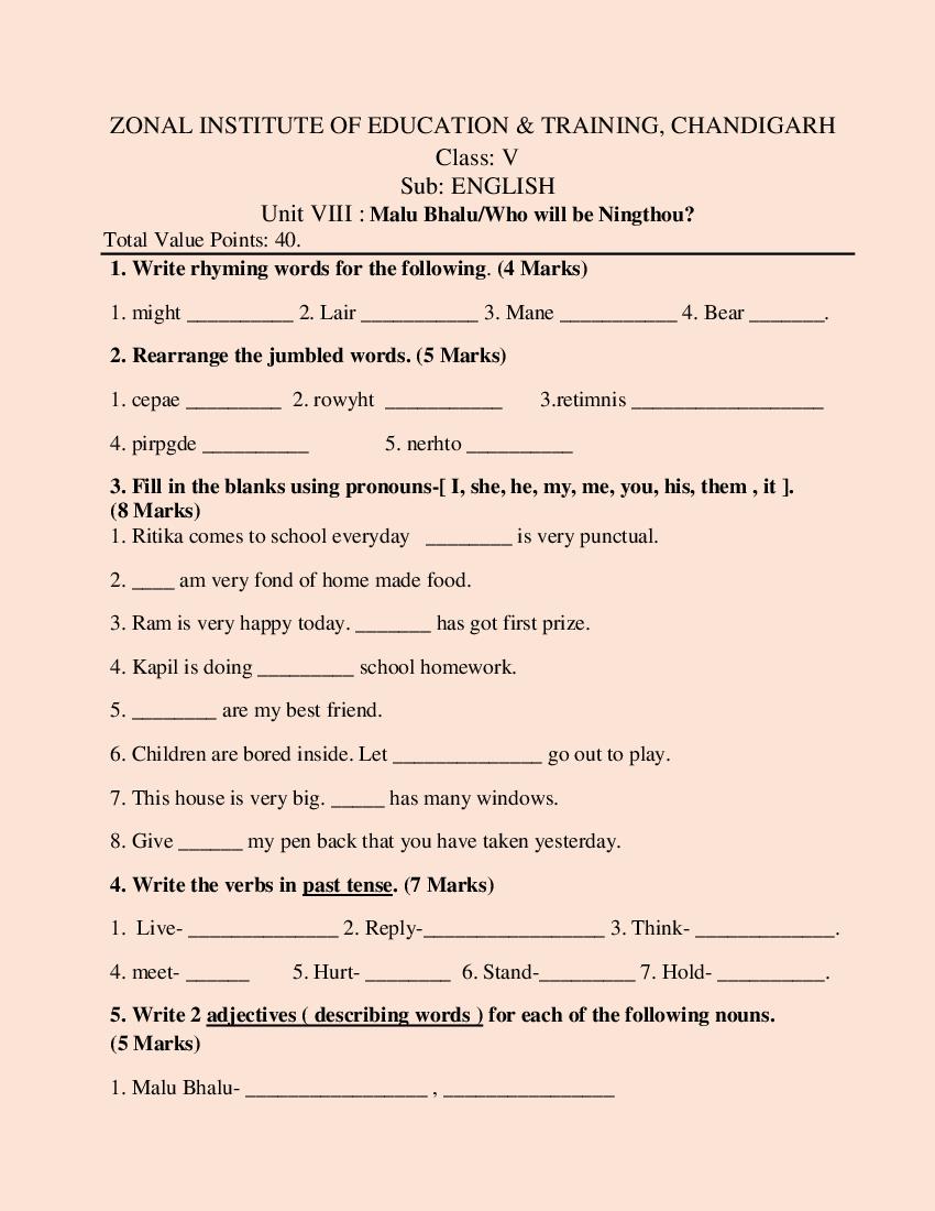 | Previous Year Paper | Class 5 Question Paper |