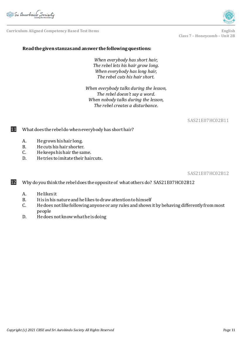 These are designed to evaluate a student’s understanding of concepts of English, their ability to apply knowledge in real-life situations, and their critical thinking skills. Unlike traditional questions that may focus on rote learning or memorization, Competency Focused Questions require students to demonstrate a deeper comprehension of the subject matter (English). These questions measure various competencies in the English subject, such as problem-solving, logical reasoning, creativity, and subject-specific skills.