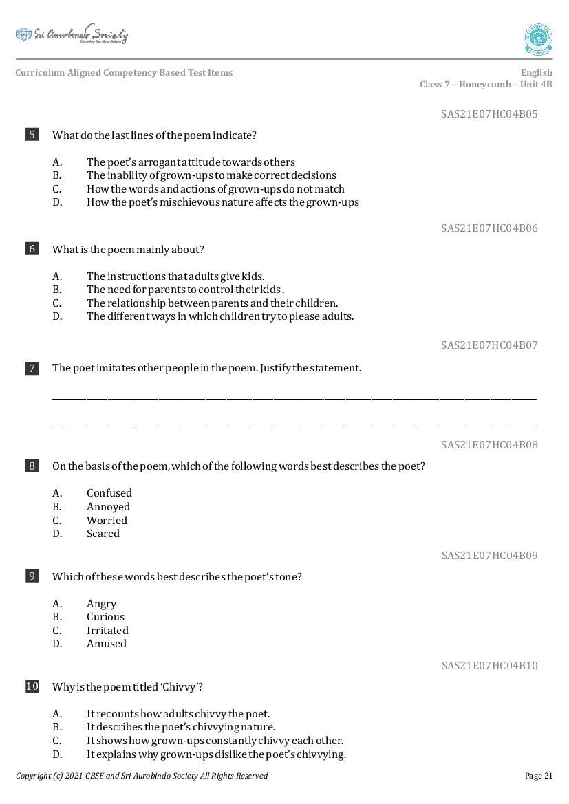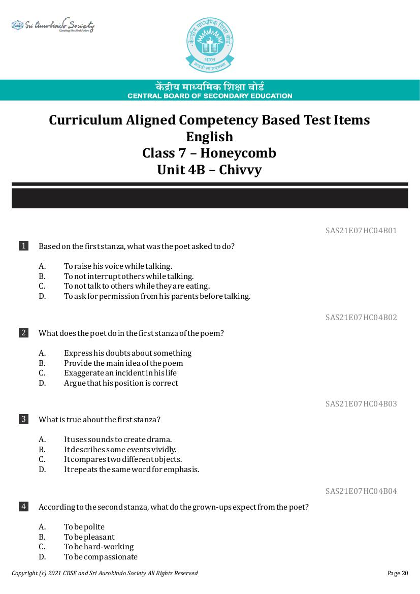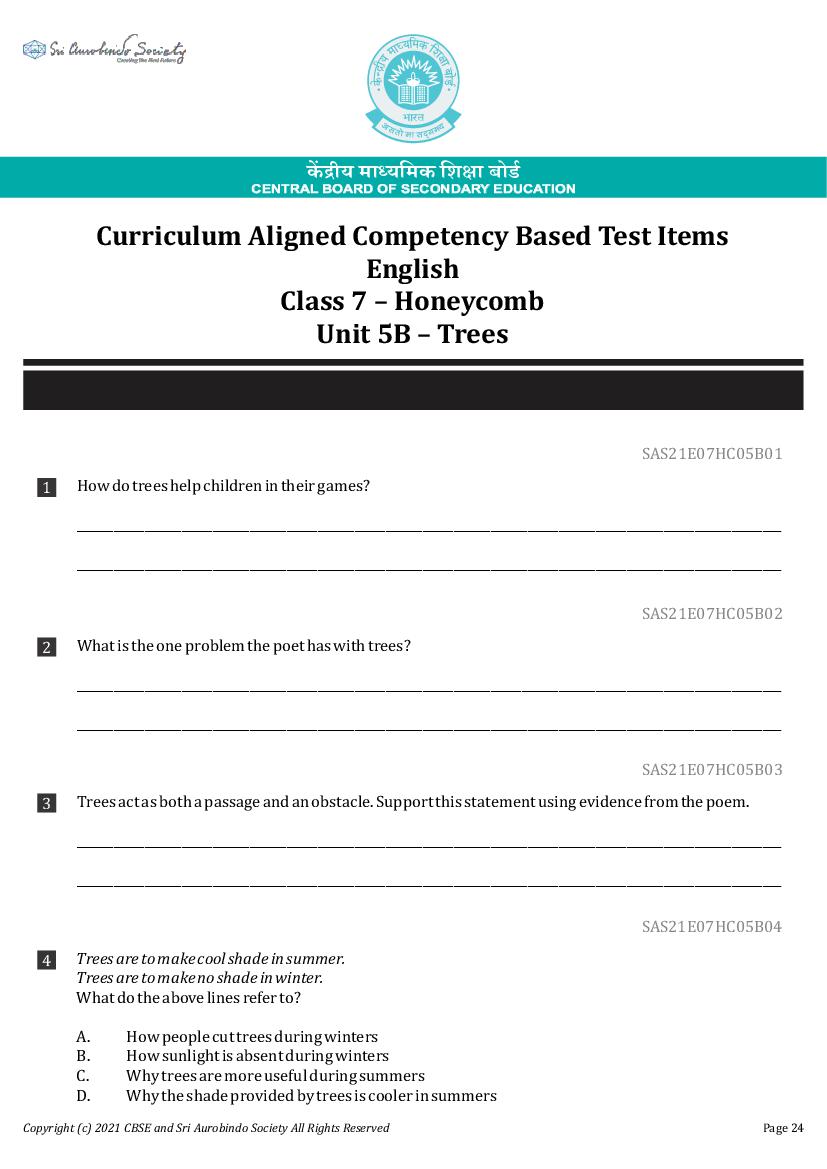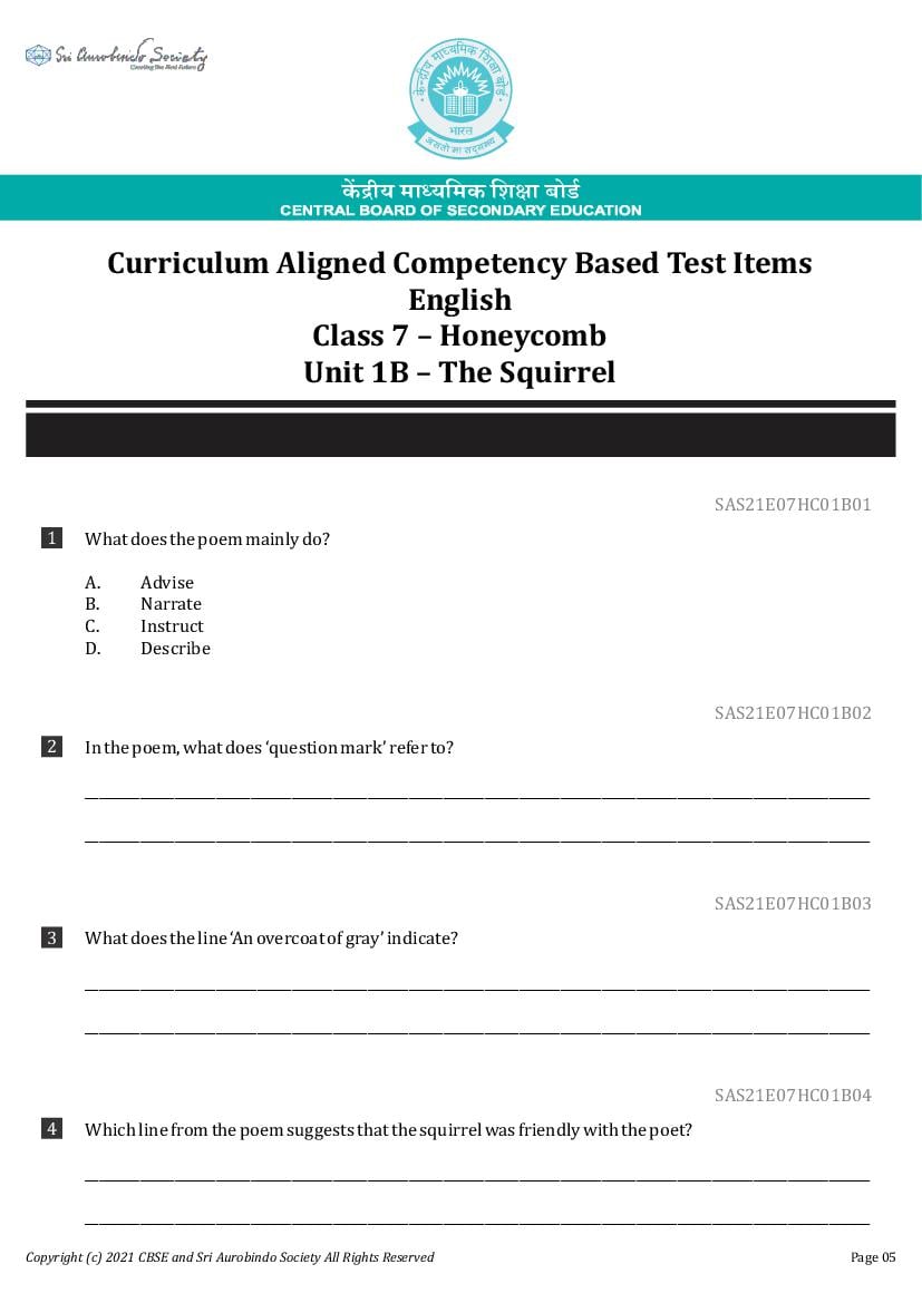 Here you can access a wide array of CBSE Competency Based Questions for the English subject. The PDF includes Multiple Choice Questions, Fill in the Blanks, Short Answer Questions, and Long Answer Questions, along with the answer key for class 7 English. The Competency Based Questions for Class 7 English can be found here.