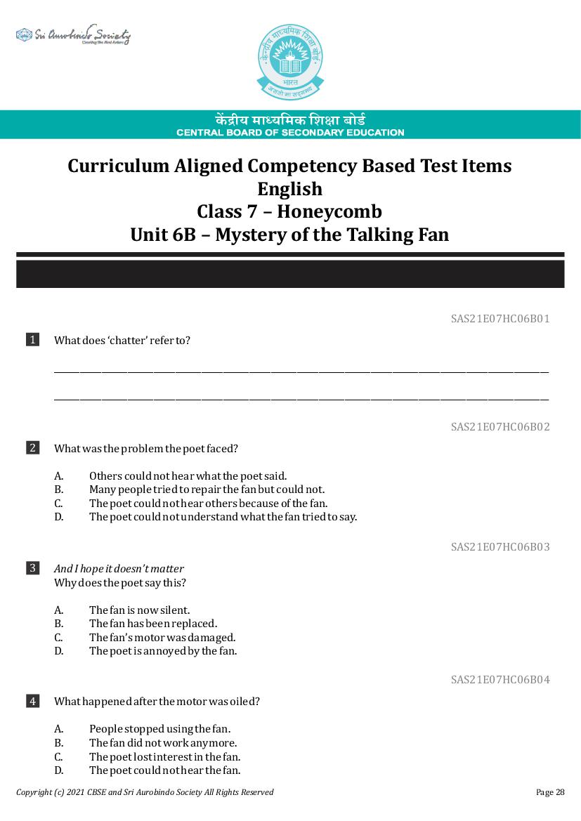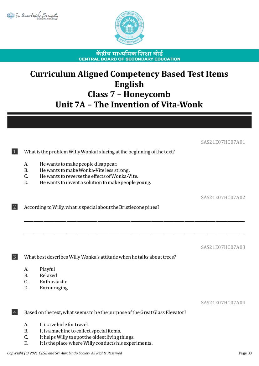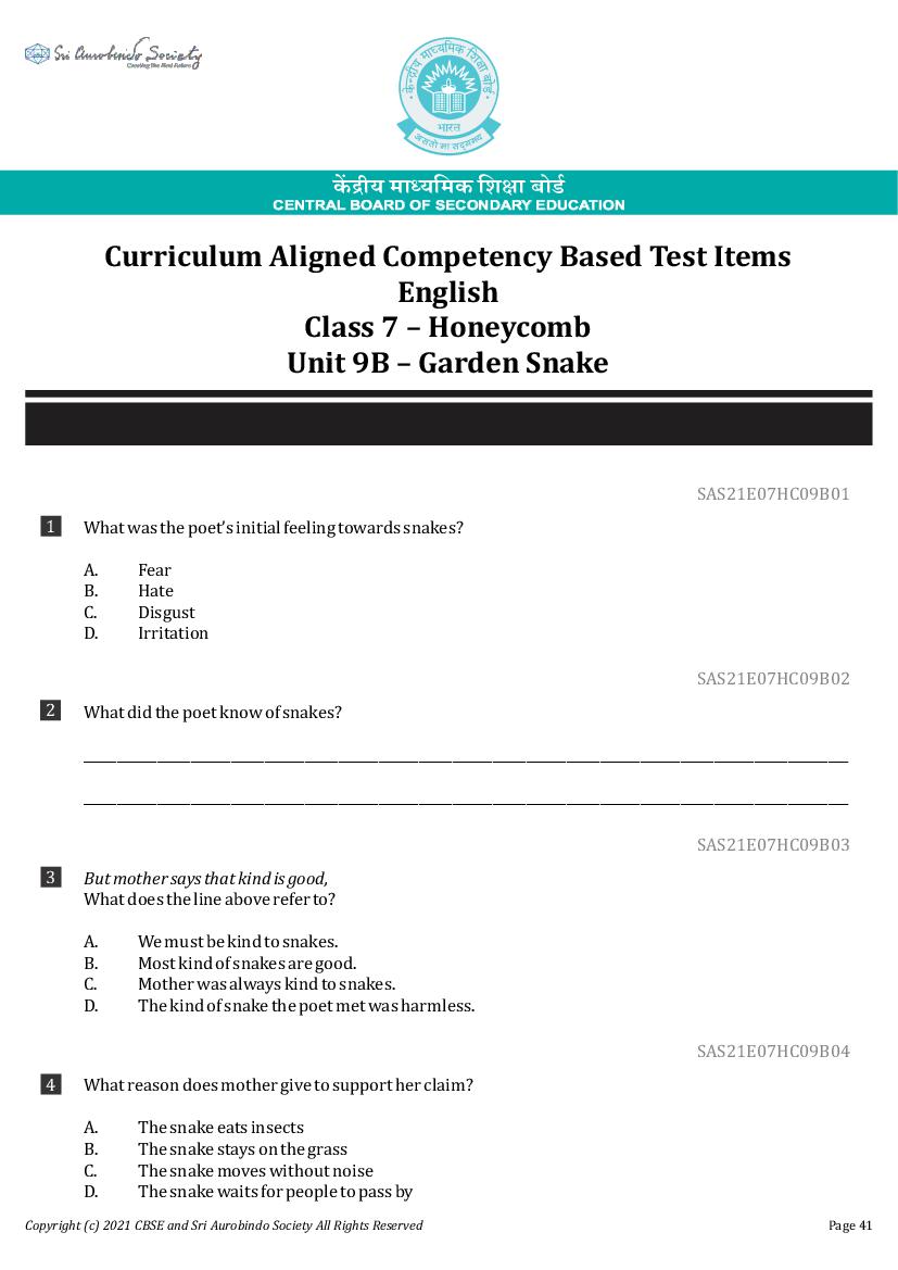 Class 7 English Competency Focused Practice Questions Download Link – Click Here to Download 7 English CBQ PDF