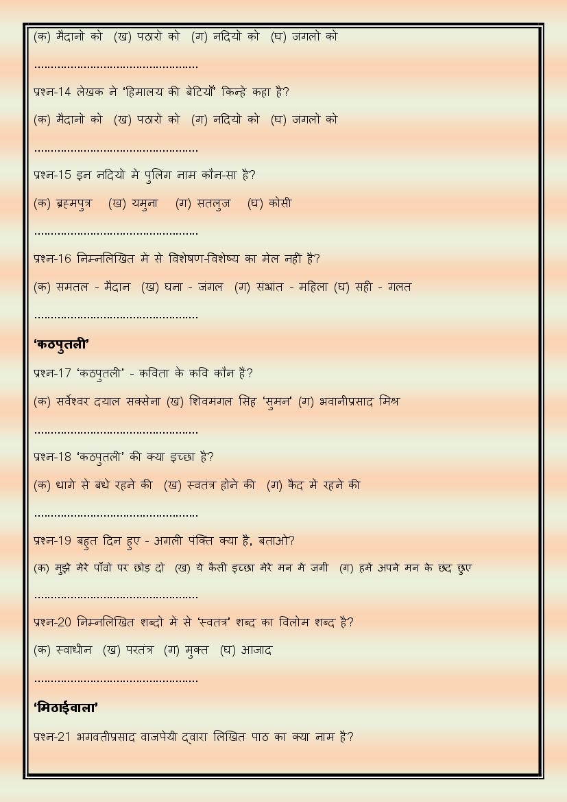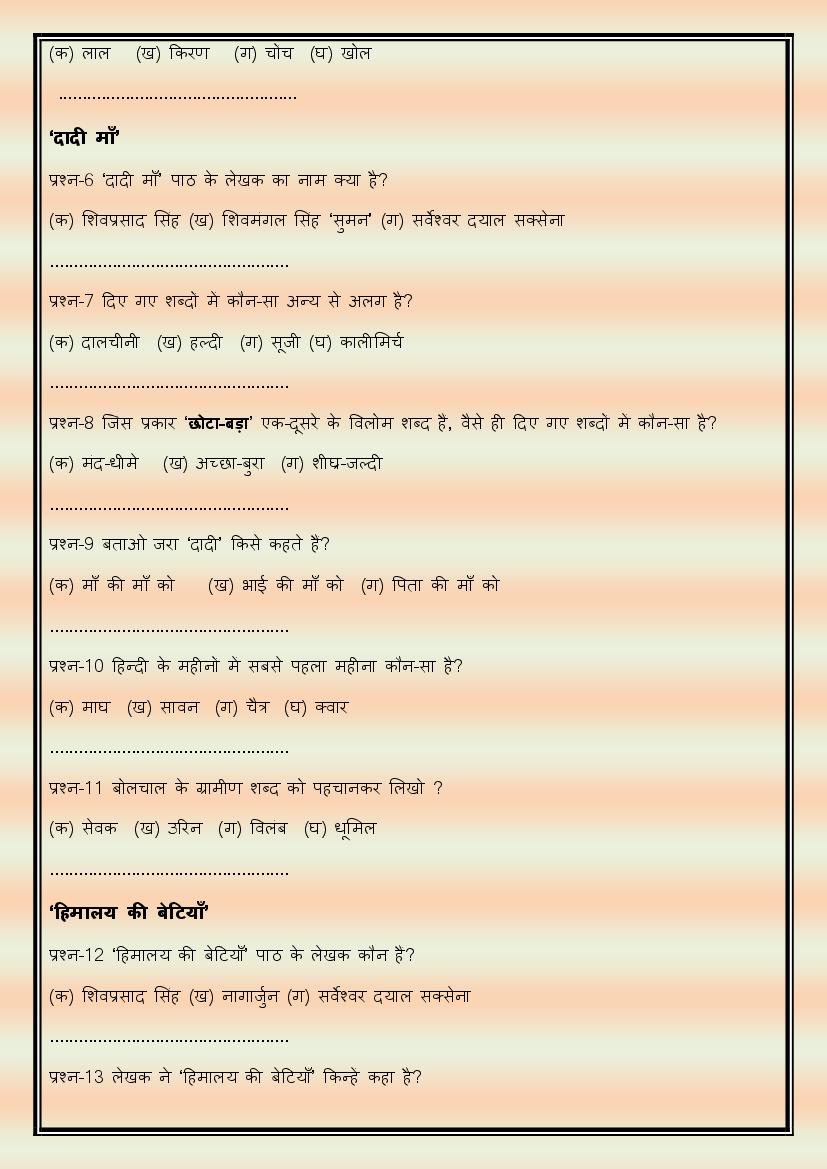 Home » 7th Class » Class 7 Hindi Competency Based Questions 2025 – Download PDF
