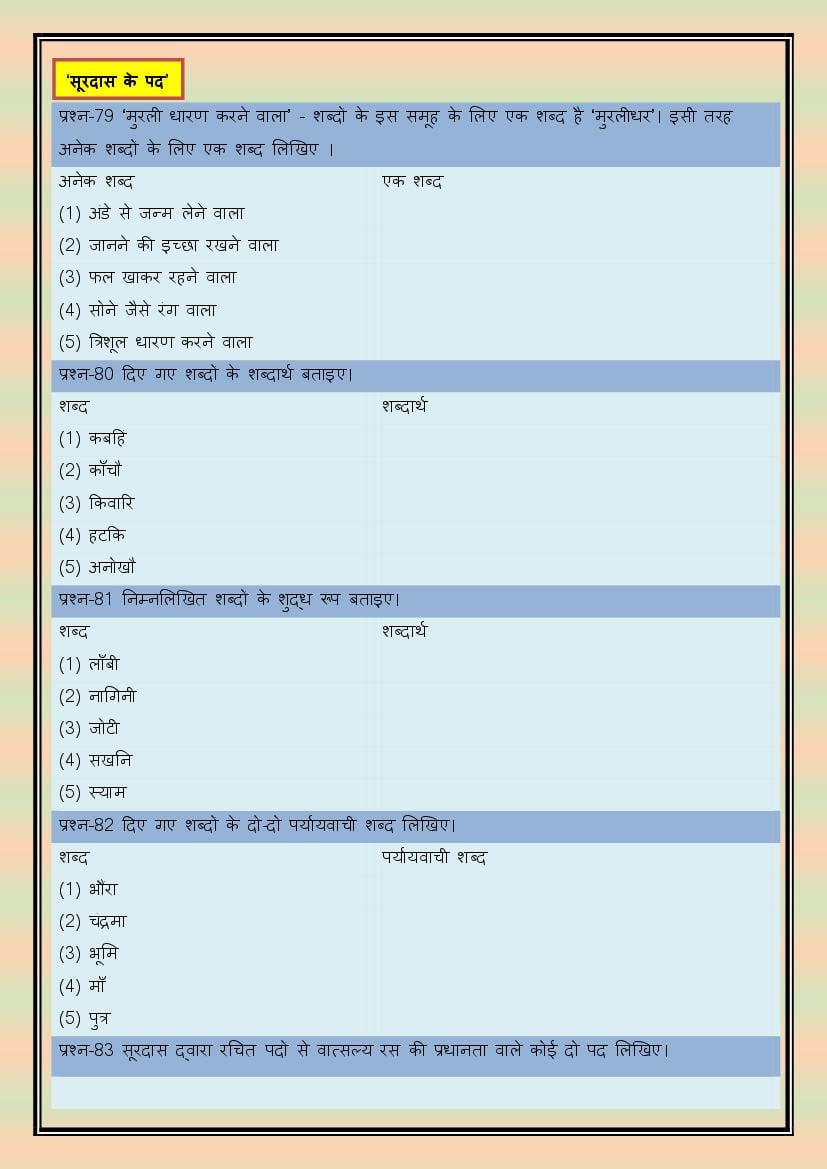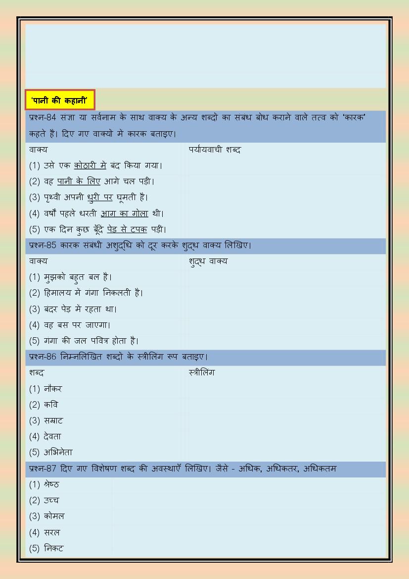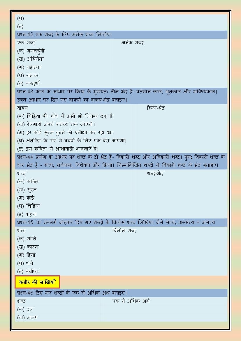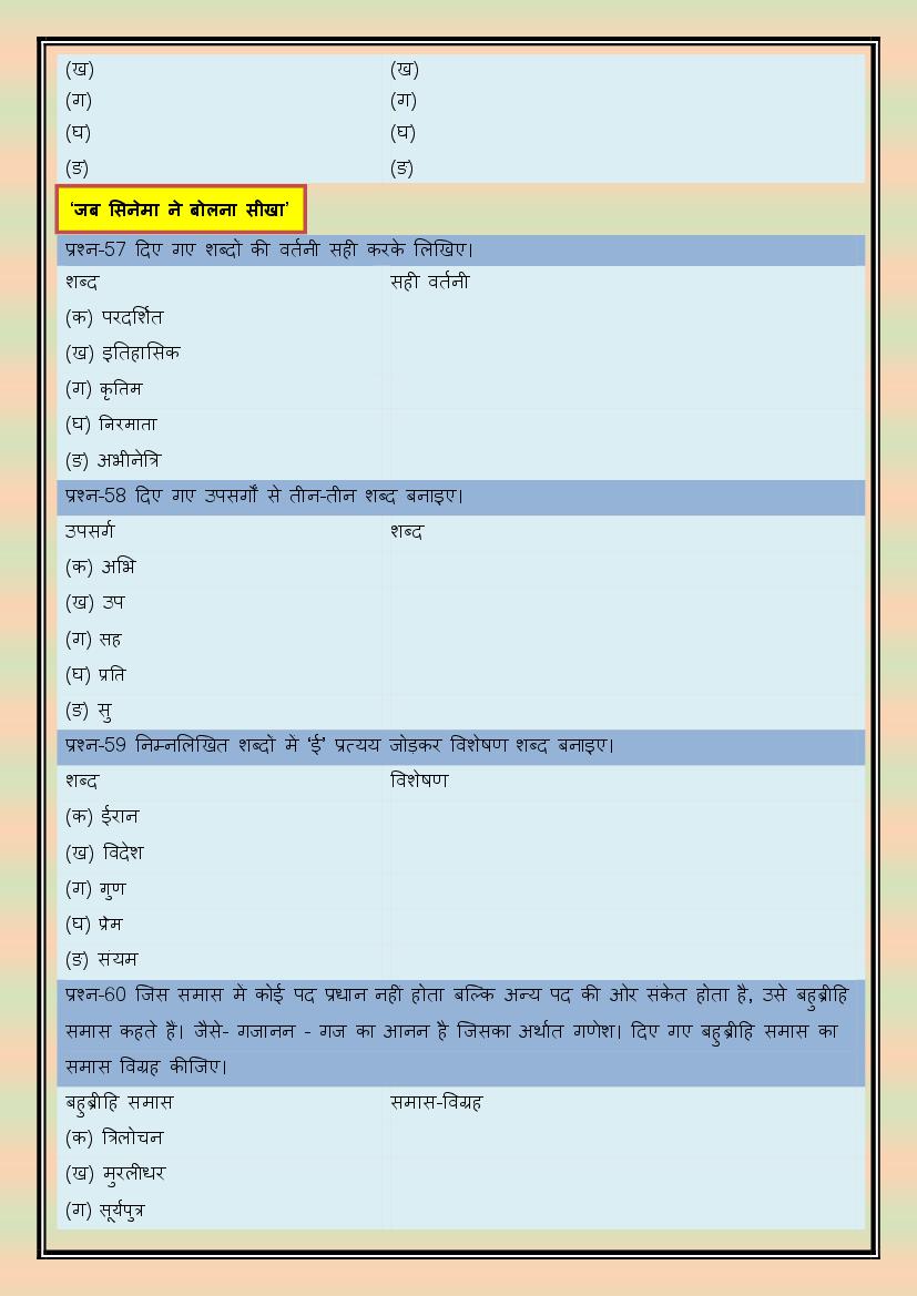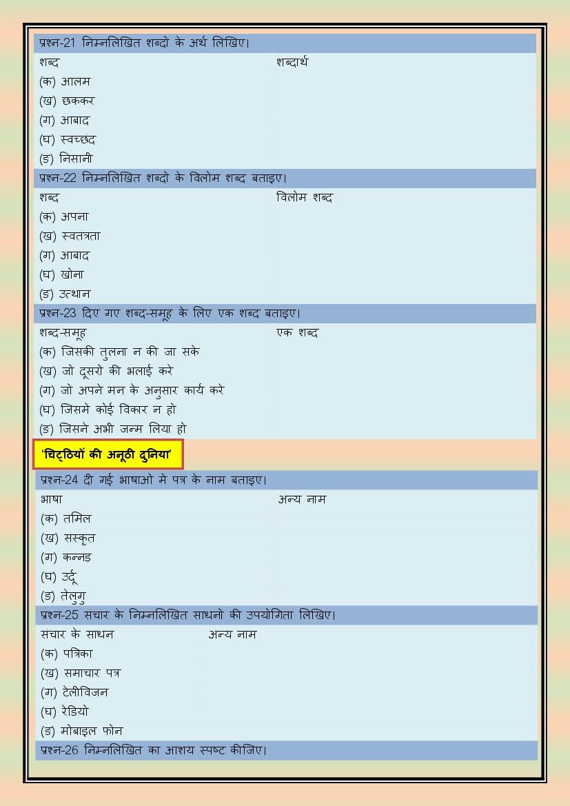 | Study Material Here | Competency Based Question for Class 8 Hindi |