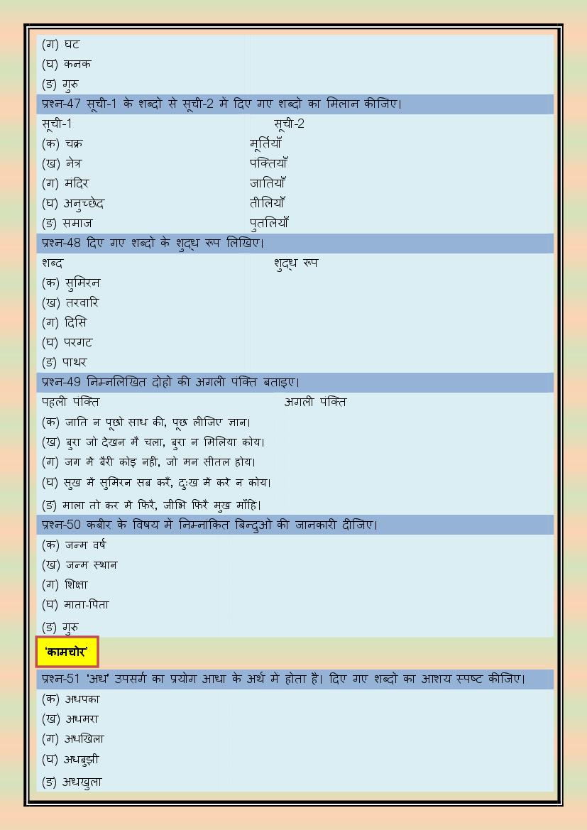 The complete pdf for competency focused practice questions for Hindi is as follows.