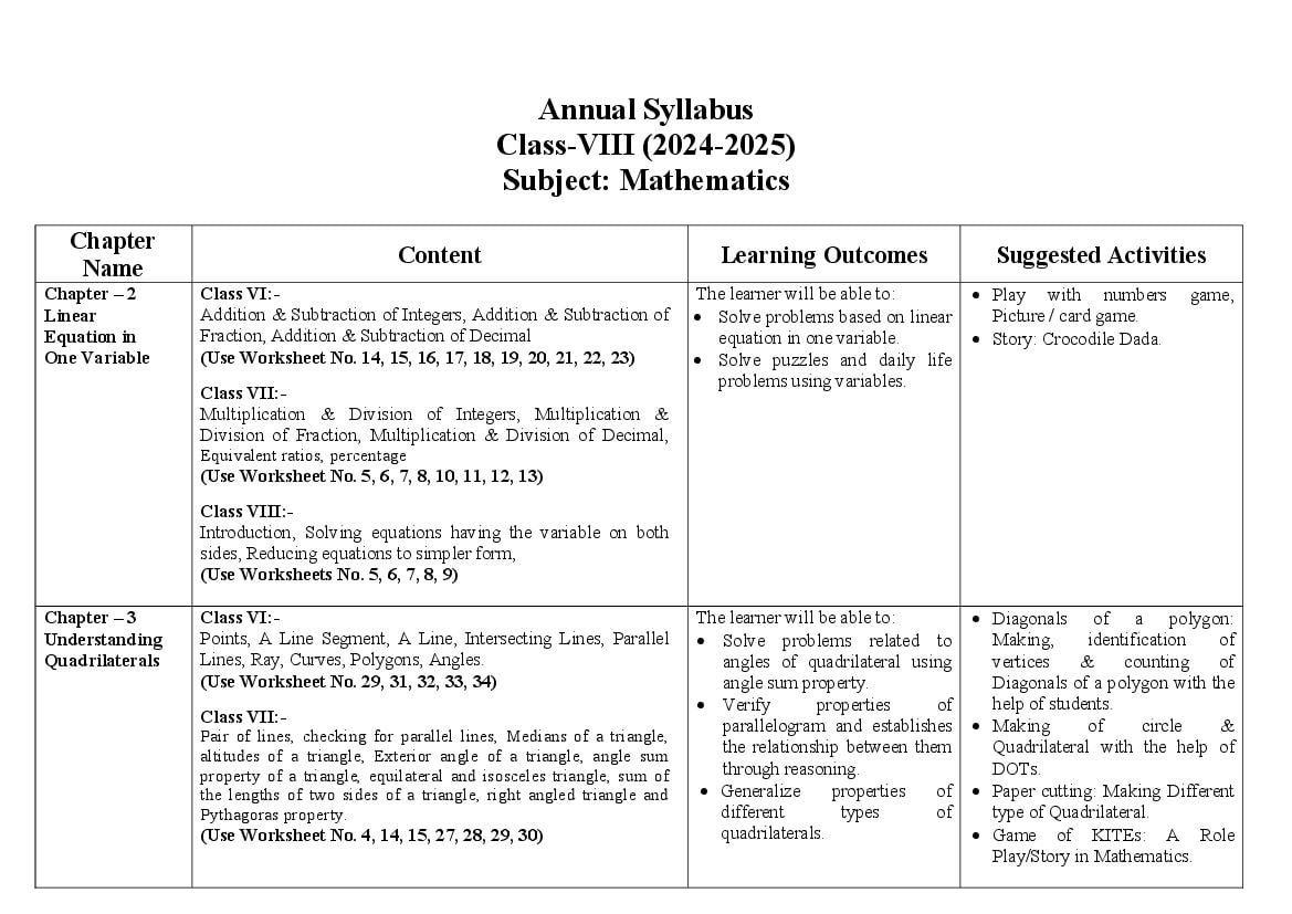 | Educational Material Here | Edudel Syllabus for Class 8 Maths |