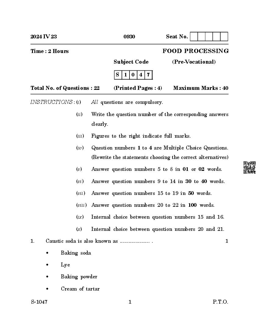 | Study Material Here | Goa Board SSC Food Processing Question Paper |