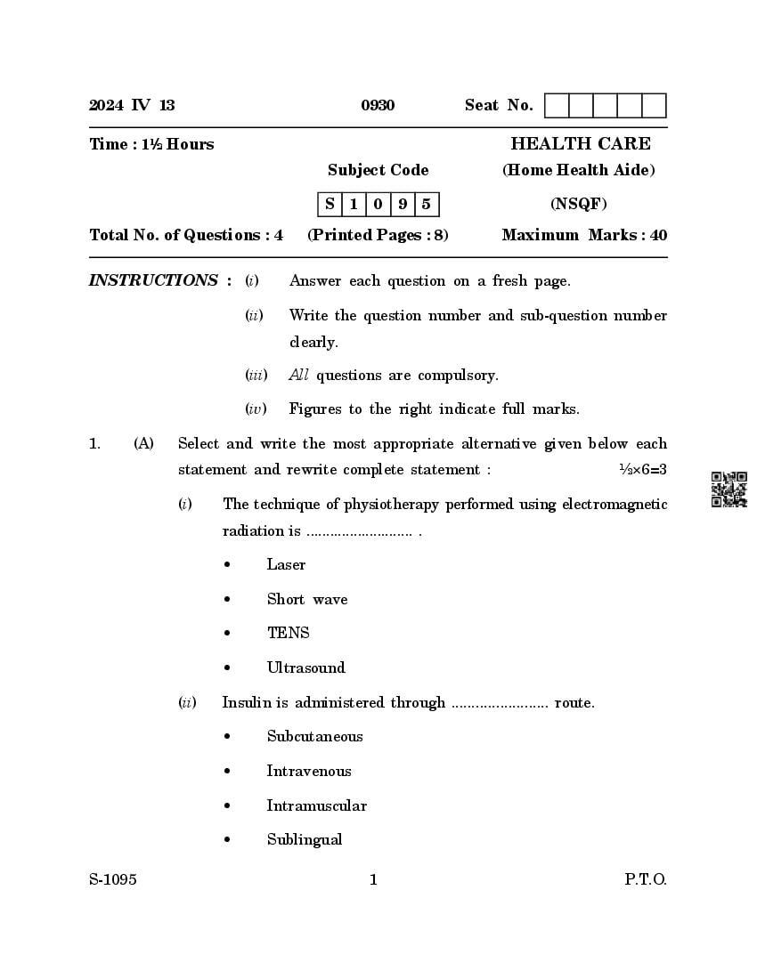 | Study Material Here | Goa Board SSC Health Care Question Paper |