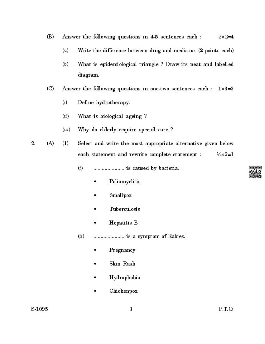The previous year question paper of Goa board for class 10 (SSC) Health Care is as follows.