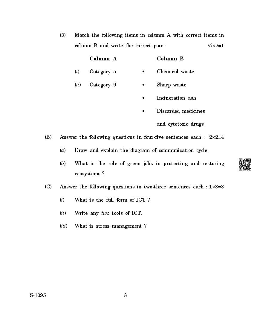 Goa Board Class 10 Question Paper 2024 Health Care View Download