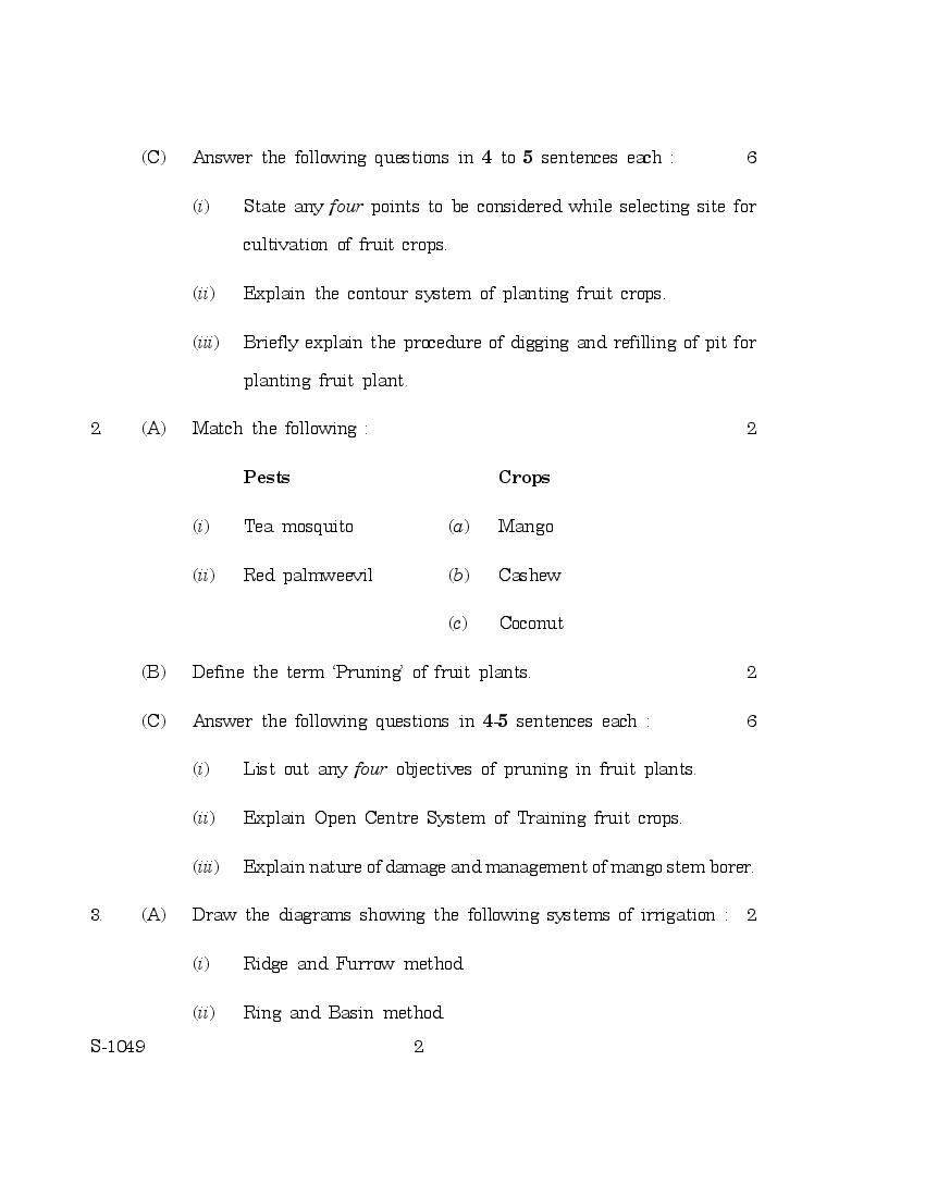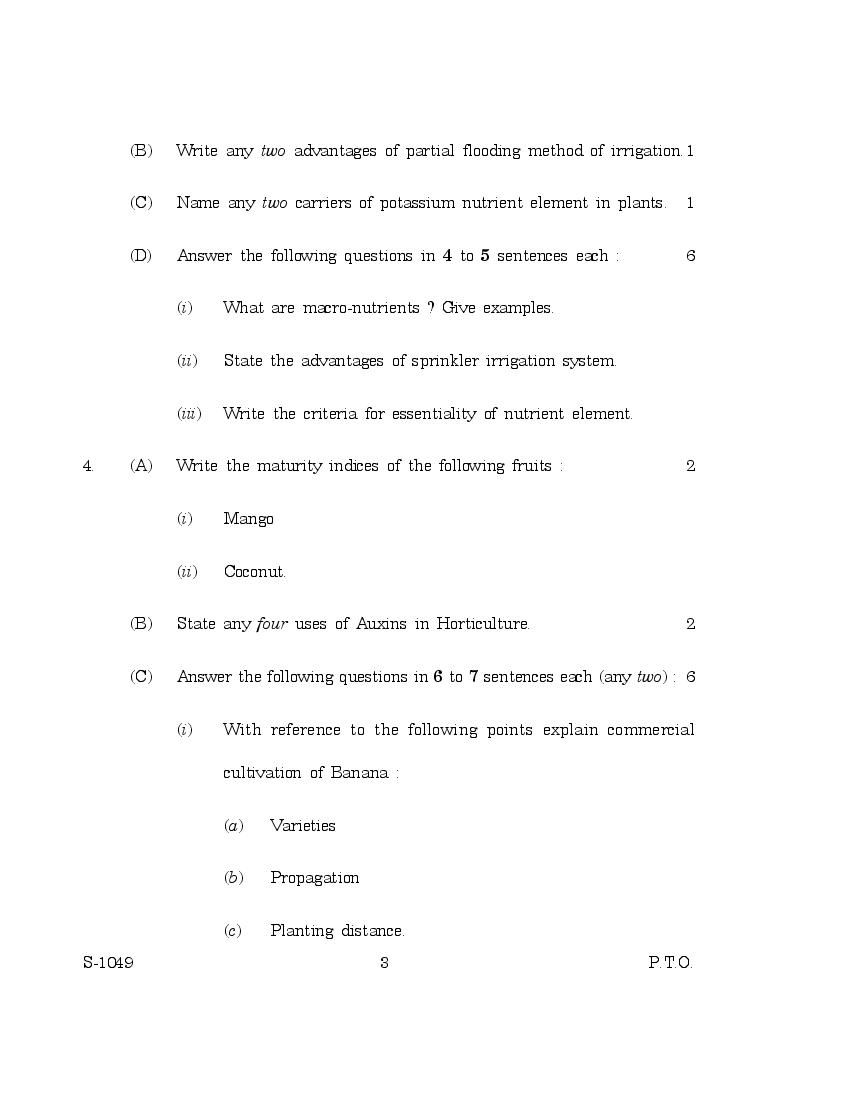 The previous year question paper of Goa board for class 10 (SSC) Horticulture is as follows.