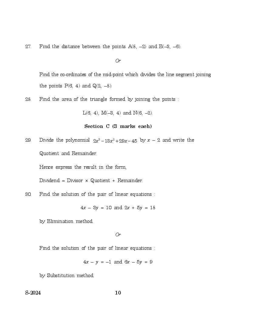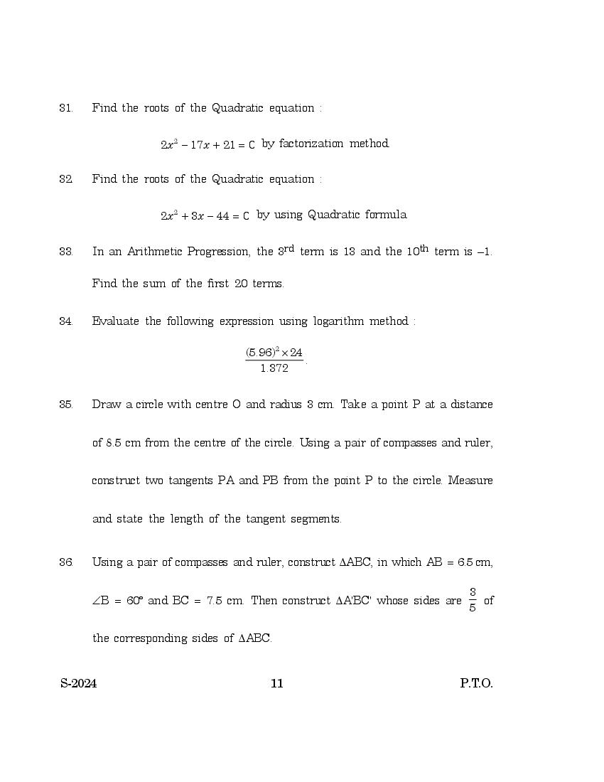 Goa Board Class 10 Question Paper 2024 for Mathematics Level 2 PDF Download – Download PDF