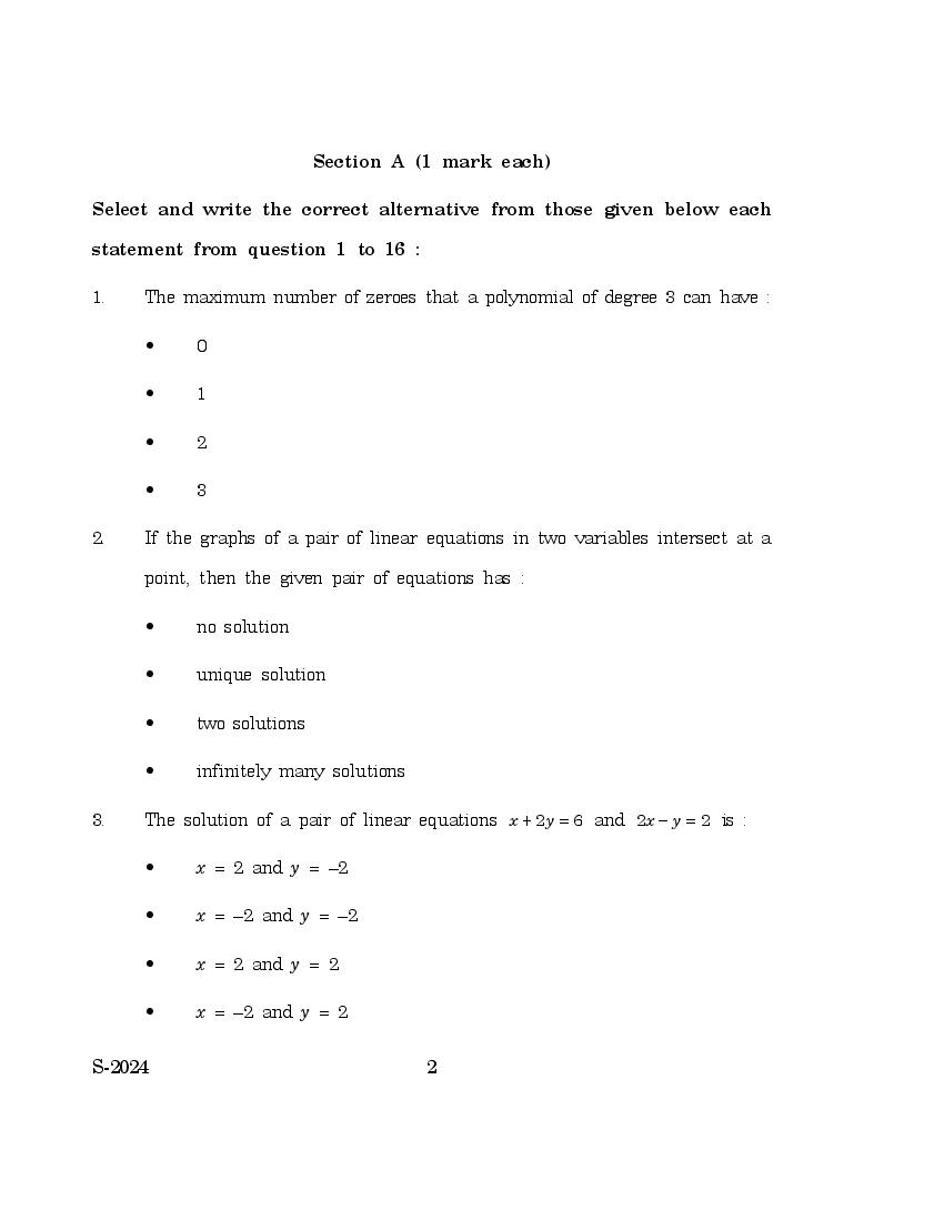 | Study Material Here | Goa Board SSC Mathematics Level 2 Question Paper |