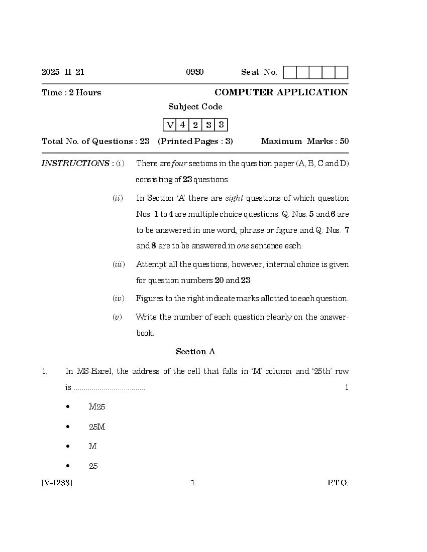Goa Board Class 12 Question Paper 2025 Computer Application View Download