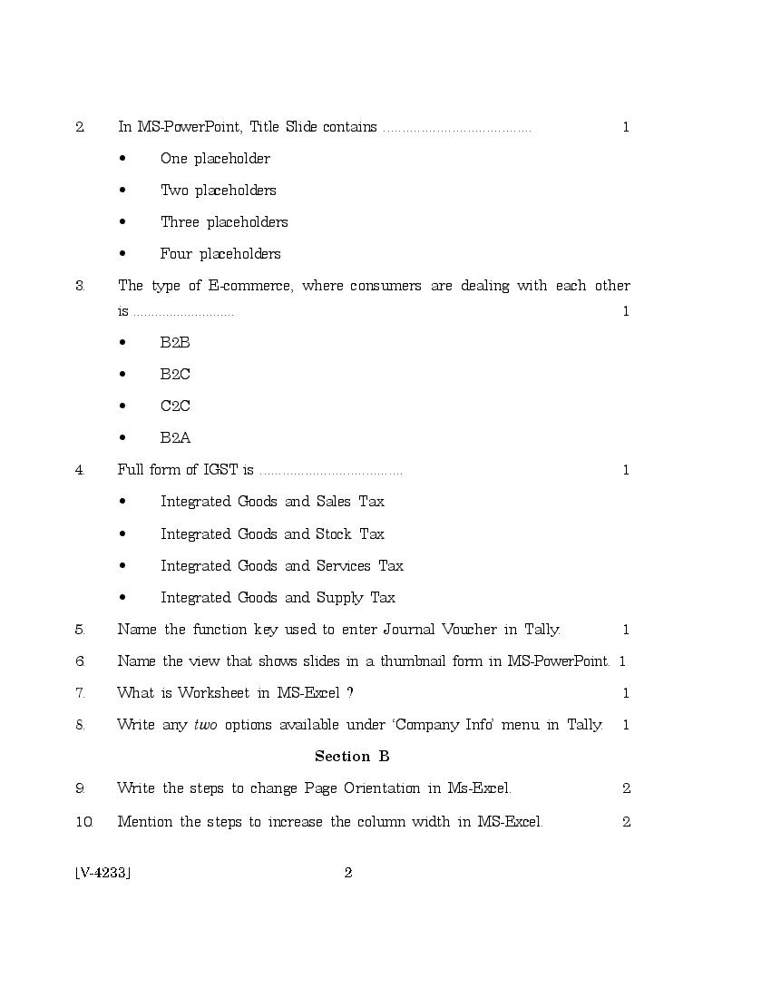 The previous year question paper of Goa board for class 12 (HSSC) Computer Application is as follows.