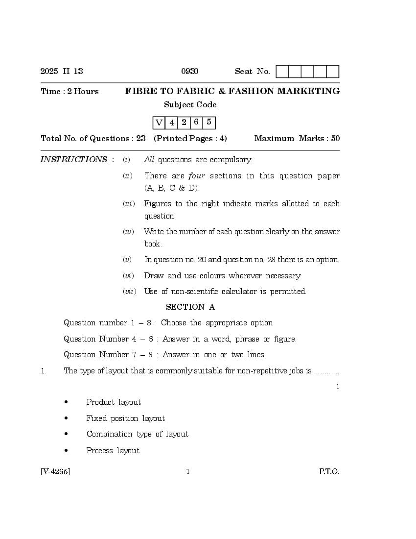 Goa Board Class 12 Question Paper 2025 for Fiber to Fabric & Fashion Marketing PDF Download – Download PDF
