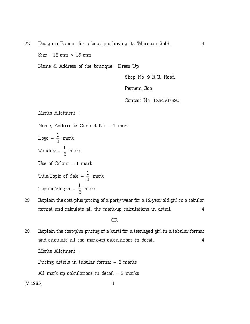 More Goa Board Class 12 Question Paper for Fiber to Fabric & Fashion Marketing PDF Download – Visit Here