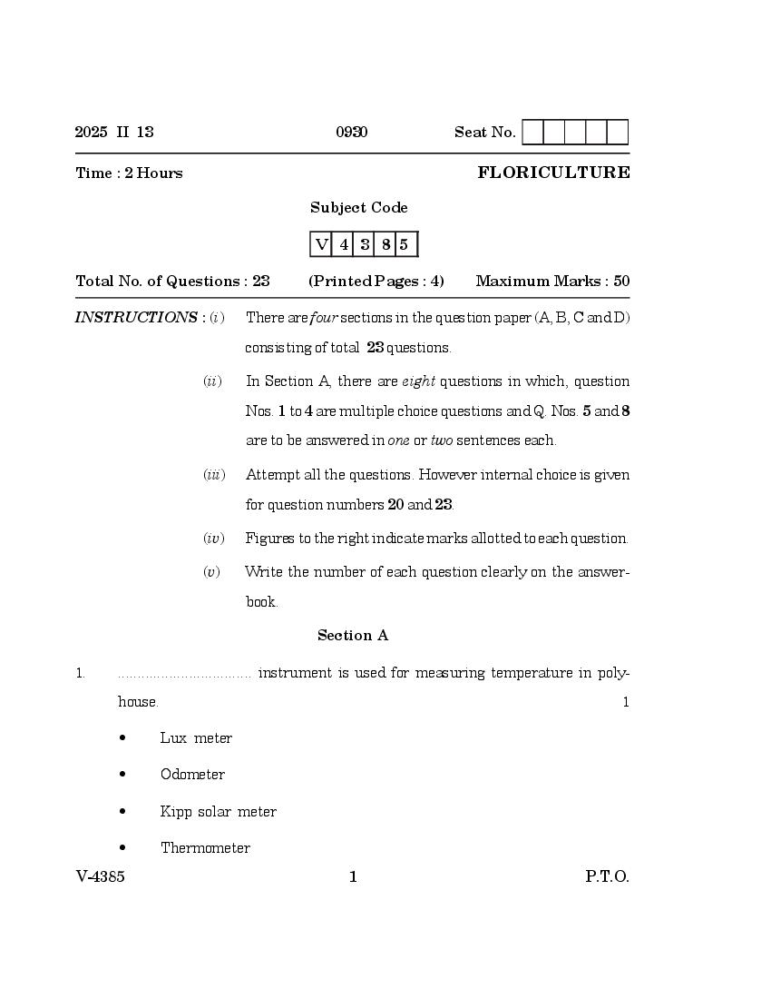 Goa Board Class 12 Question Paper 2025 Floriculture View Download