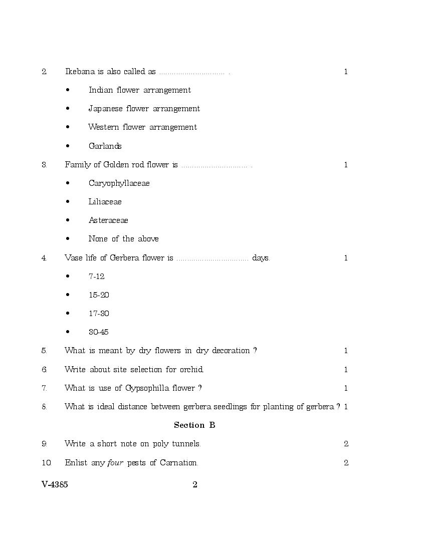 Goa Board Class 12 Question Paper for Floriculture